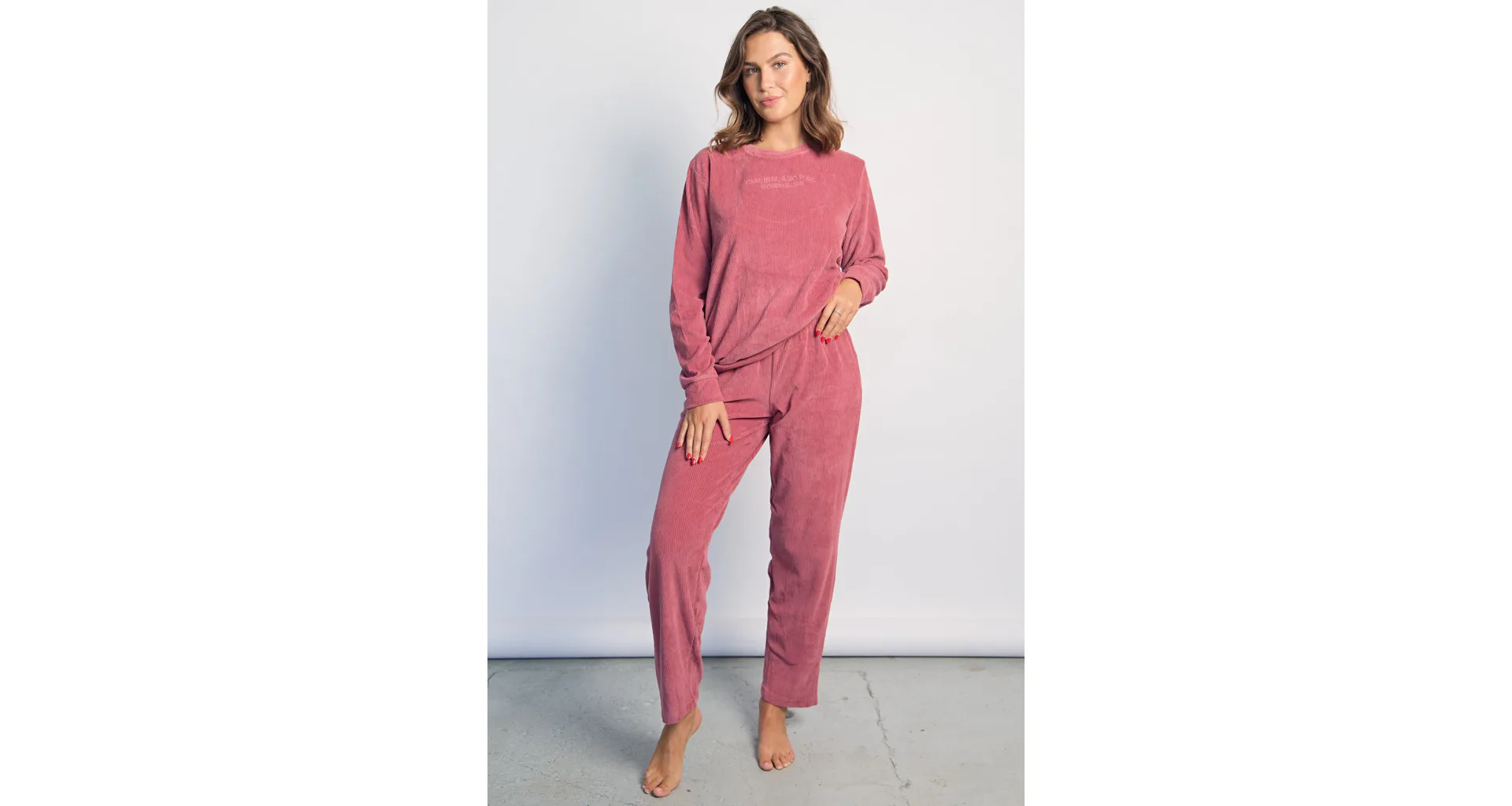 Dámské dvoudílné pyžamo představuje perfektní kombinaci elegance a pohodlí. Vyrobeno z kvalitního úpletu, který je měkký, prodyšný a příjemný na dotek.