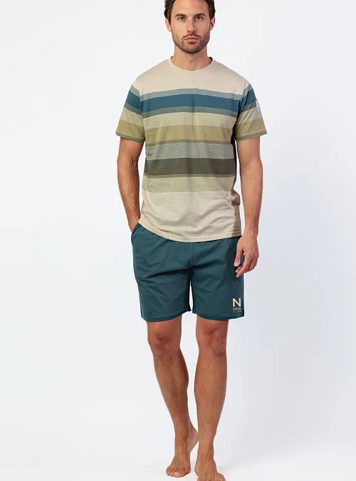 Pohodlí, které si zamilujete každou noc. Pánské pyžamo ze 100% bavlny je prodyšné, měkké na dotek a šetrné k pokožce. Pyžamo tvoří tričko s krátkým rukávem a kraťasy nad kolena s kapsami. Vsaďte na kvalitu, která vám zajistí ničím nerušený odpočinek.