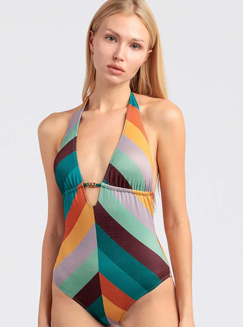 Vyrazte k vodě v atraktivních jednodílných plavkách, které zaujmou na první pohled barevným letním vzorem. Trojúhelníkové košíčky s vyjímatelnou výztuhou se přizpůsobí vašemu poprsí a zajistí přirozený tvar a pohodlí.