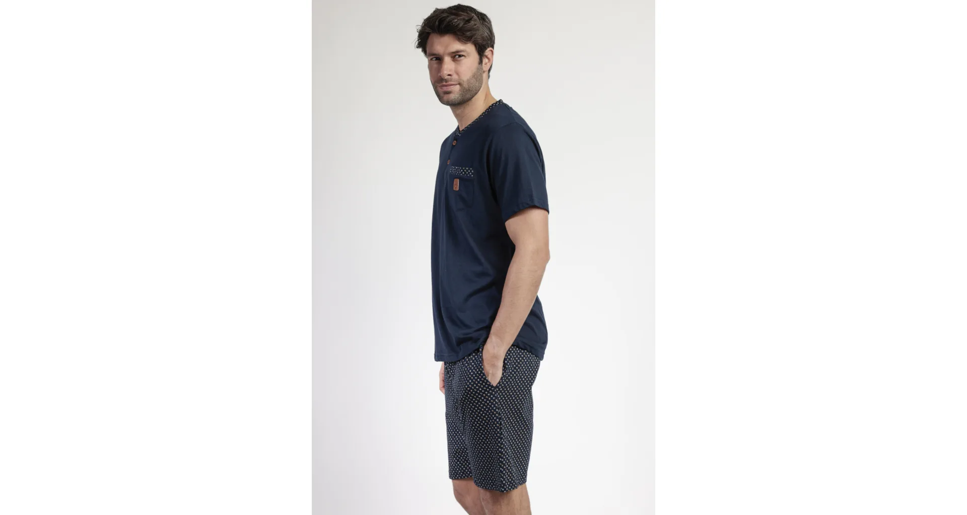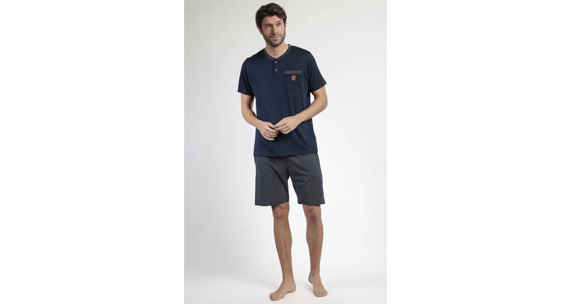 Krátké pánské pyžamo je pohodlné a skvěle se přizpůsobí postavě. Ideální nejen na spaní, ale i pro chvíle odpočinku během dne. Pořiďte si stylové pánské pyžamo Admas.