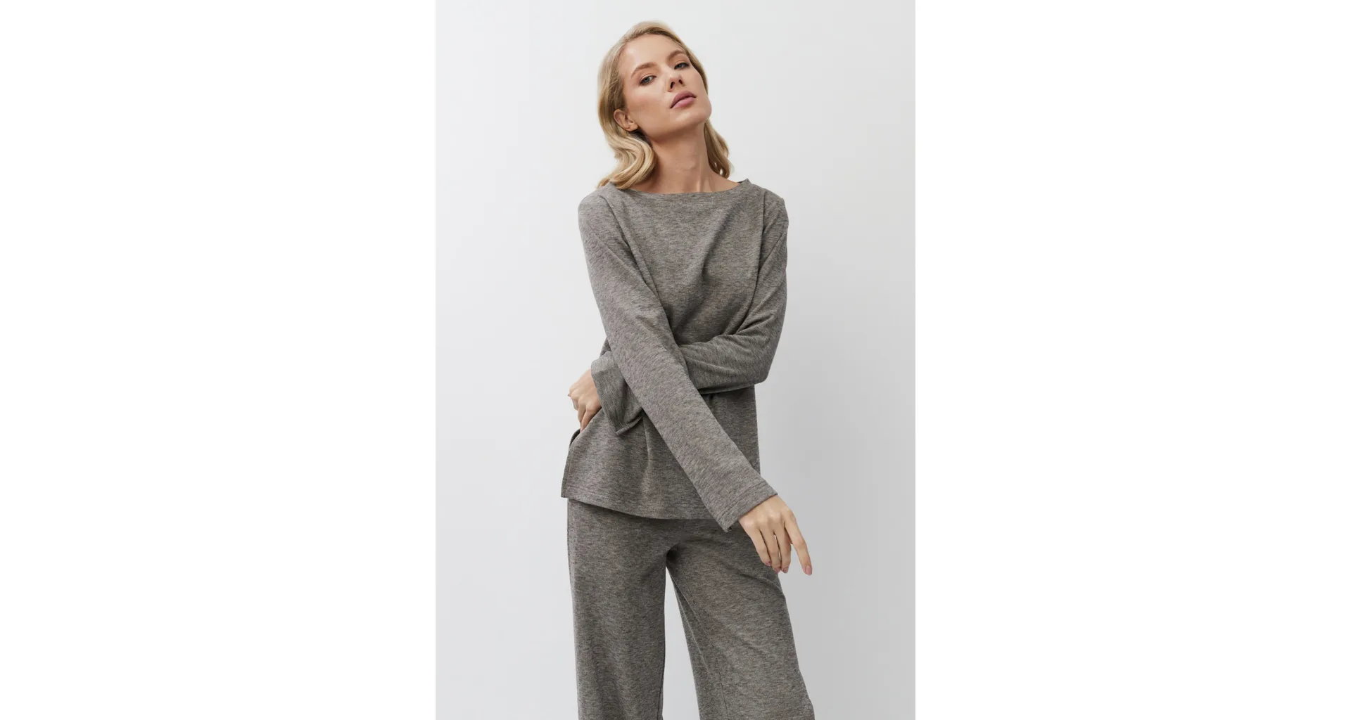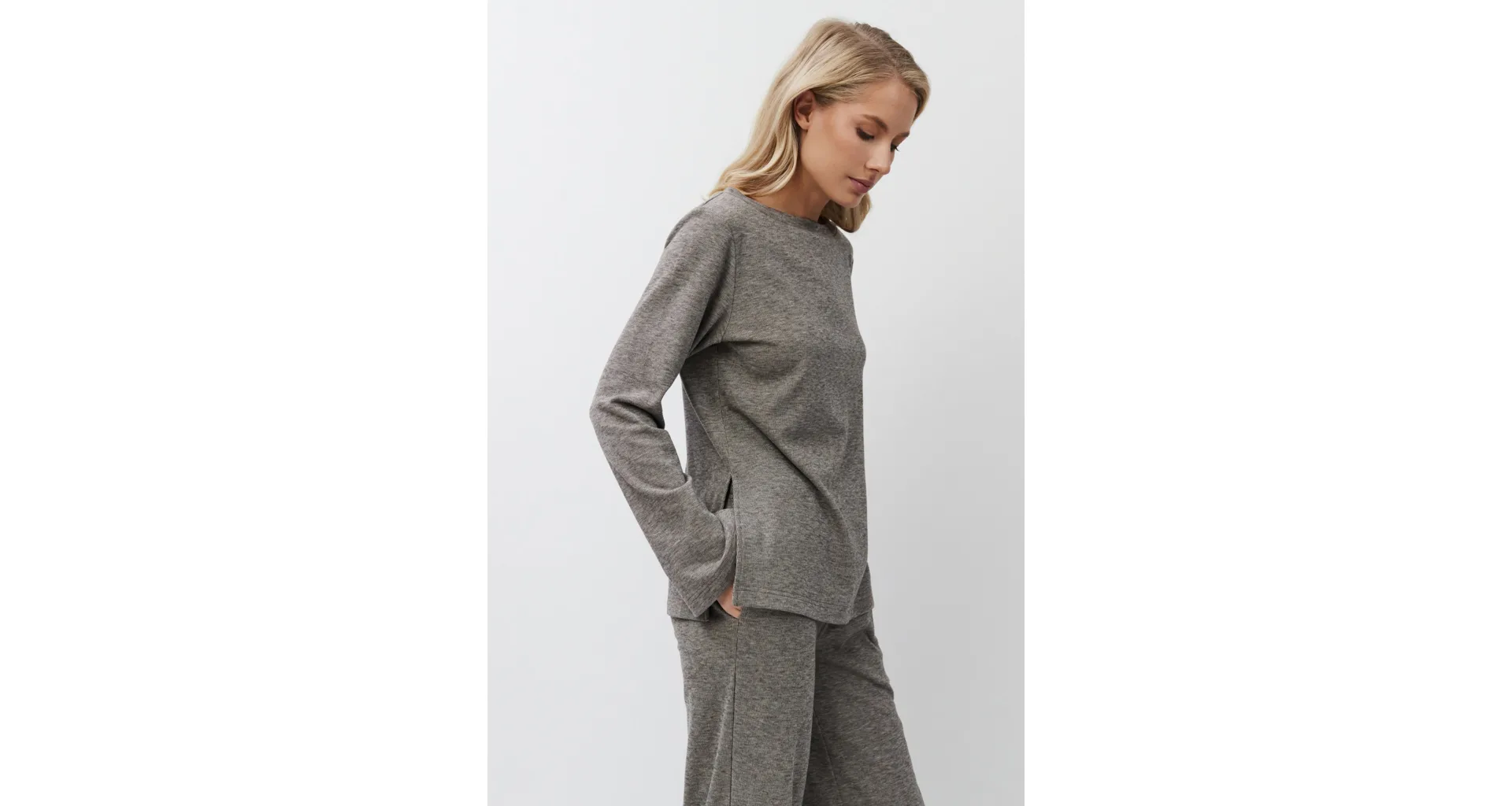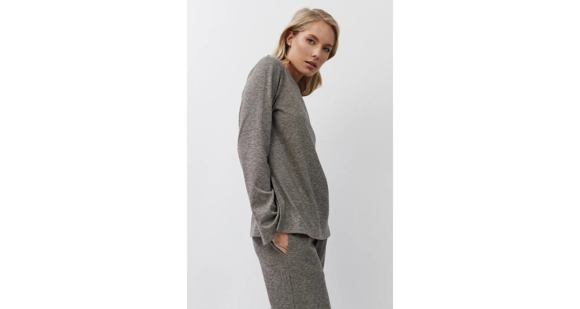 Stylový domácí oděv je vyroben z příjemné látky s jemnou proužkovanou strukturou. Zajistí vám pohodlí při celodenním nošení. Moderní rozparky po stranách dodávají hornímu dílu šmrnc. Kalhoty mají praktické kapsy pro uložení drobností. Pořiďte si atraktivní outfit z limitované kolekce Aruelle.
