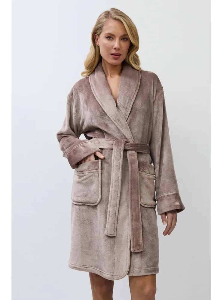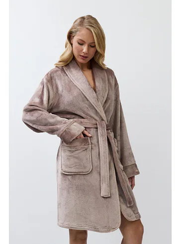 Teplý dámský župan v hnědé barvě