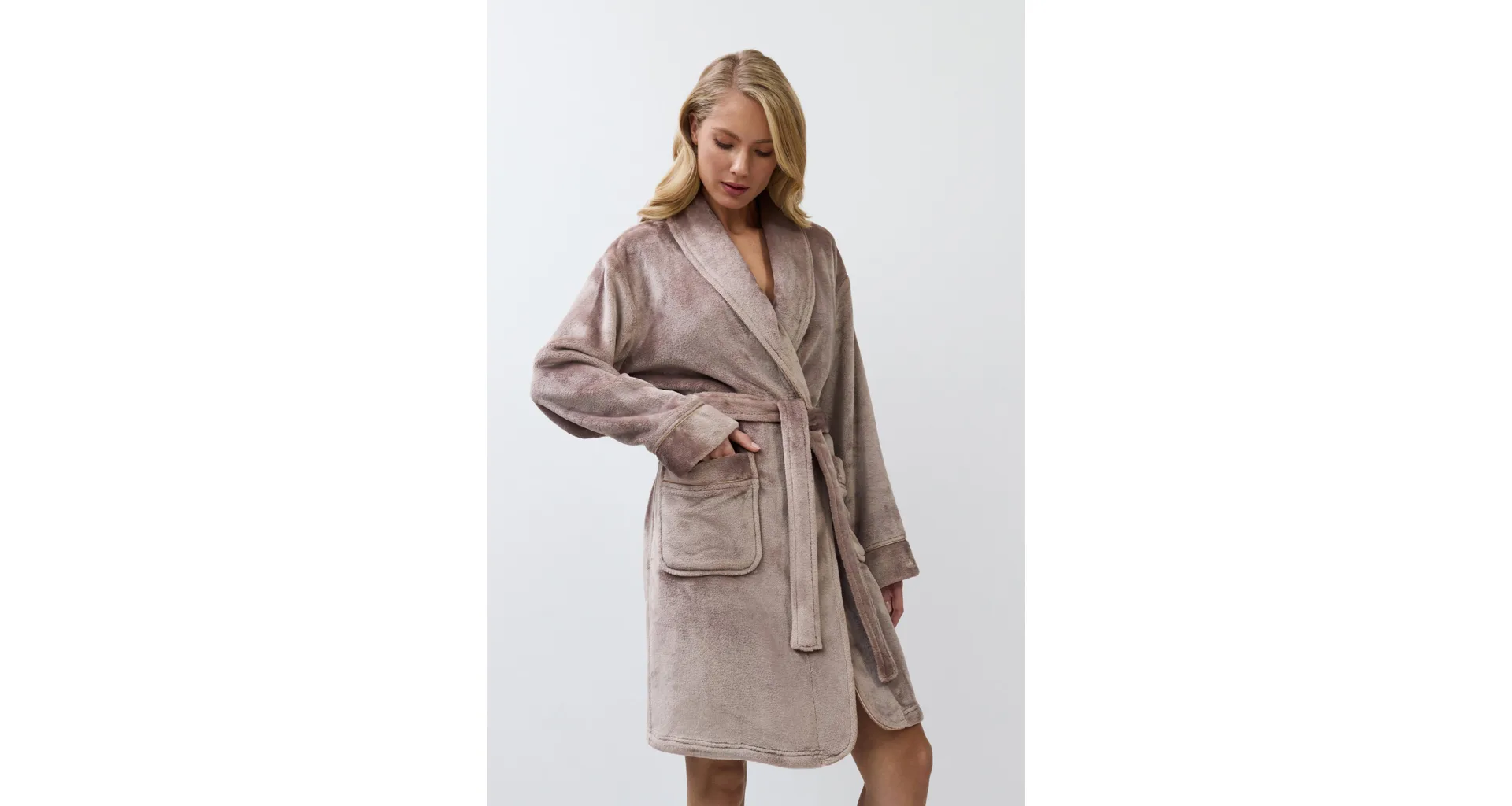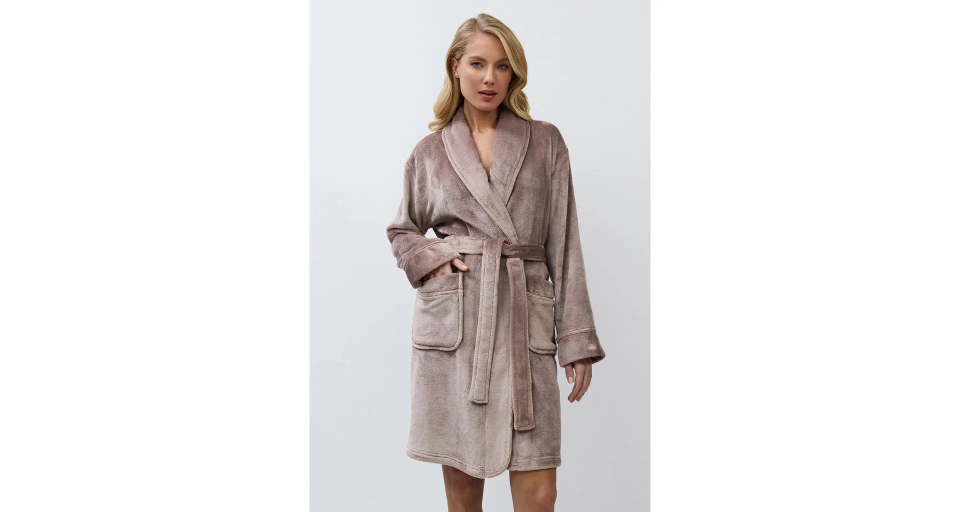 Zahřejte se v teplém dámském županu a dopřejte si královskou eleganci. Límec, manžety a kapsy zdobí saténová lemovka, která županu dodává nádech luxusu. Má praktické kapsy pro uložení drobností a délku přibližně nad kolena.