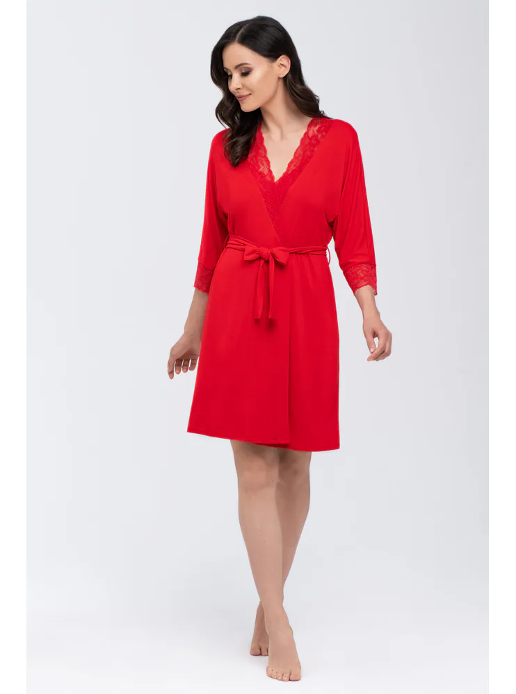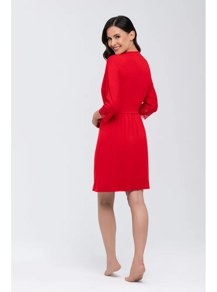 Dámský župan s krajkou v červené barvě