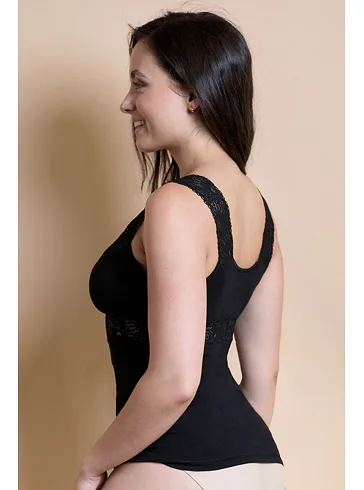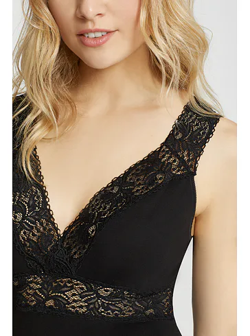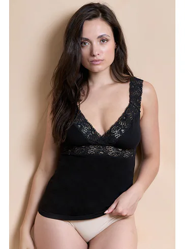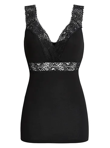Tílko od německé značky Con-ta vás uchvátí sexy výstřihem do písmene V a elegantní krajkou. Bavlněné tílko v černé barvě je ideálním kouskem na každodenní nošení.