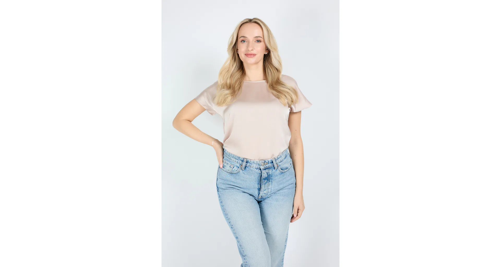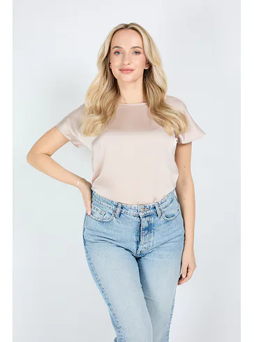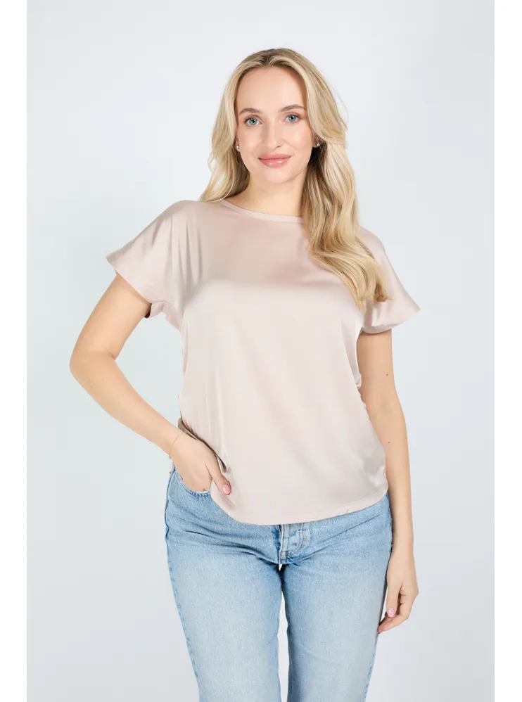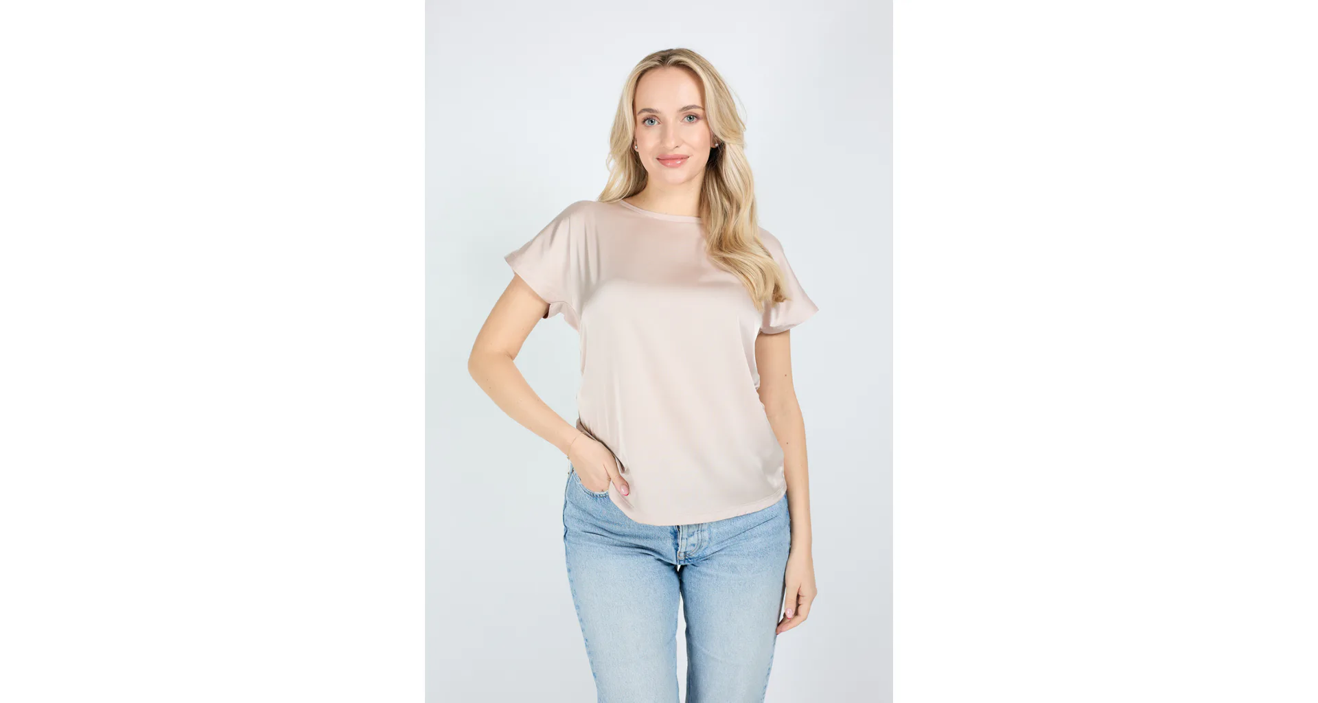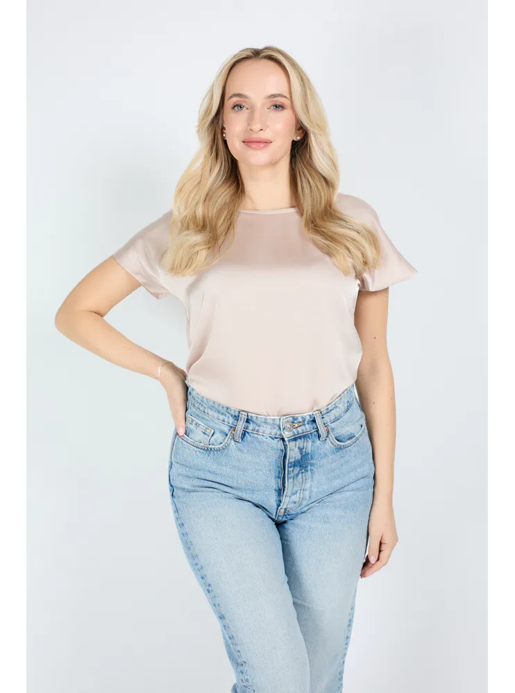 Tričko s krátkým rukávem je díky volnému střihu ideální volbou pro každodenní nošení do práce i na volný čas. Kulatý výstřih dodává tričku eleganci a jemnost. Saténový efekt na předním díle působí sofistikovaně.