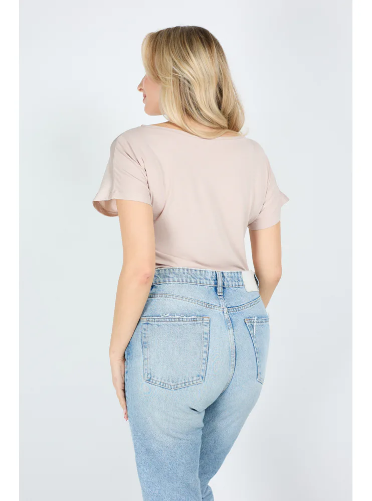 Elegantní tričko volné s krátkým rukávem v pudrově růžové barvě