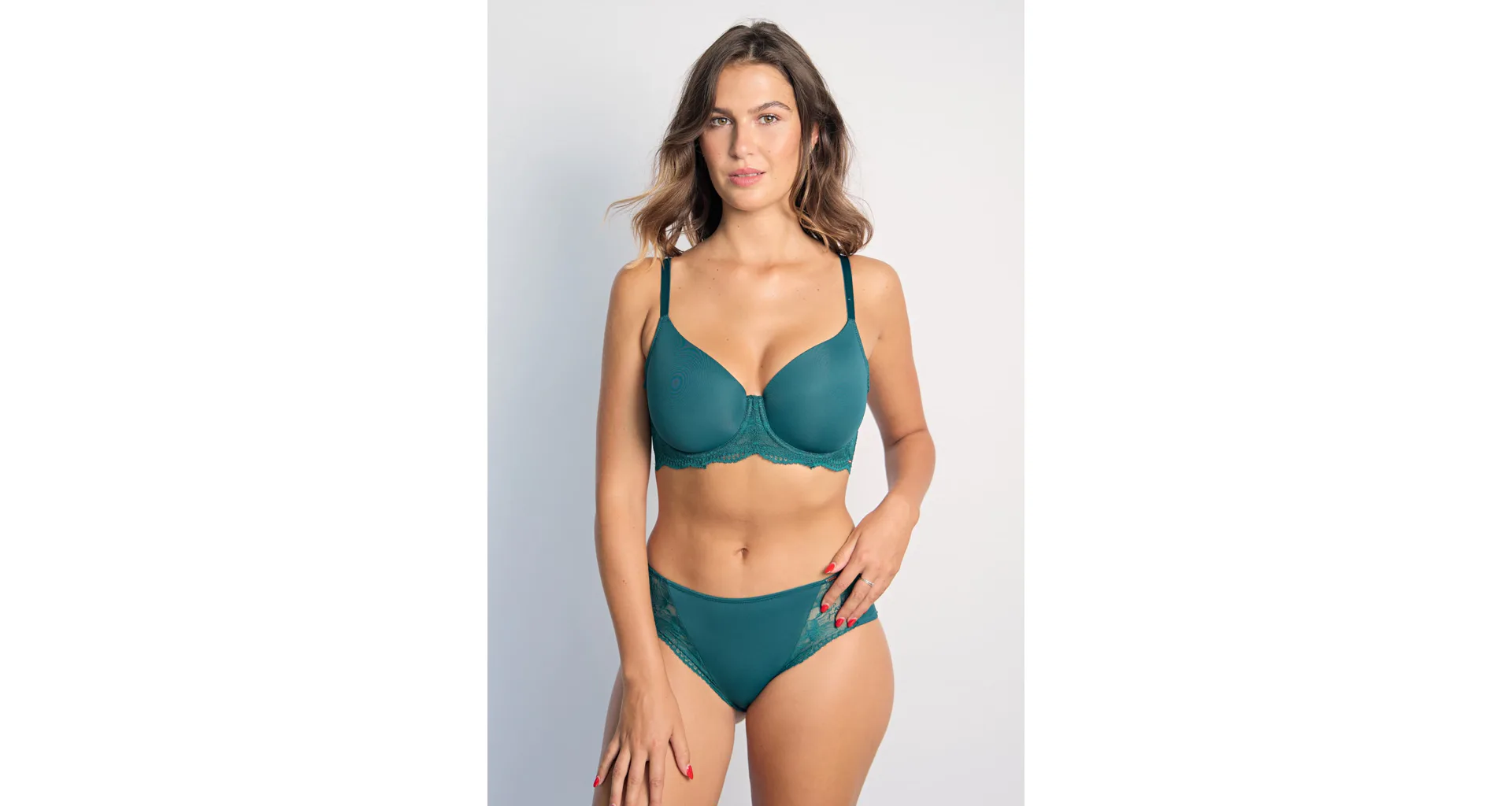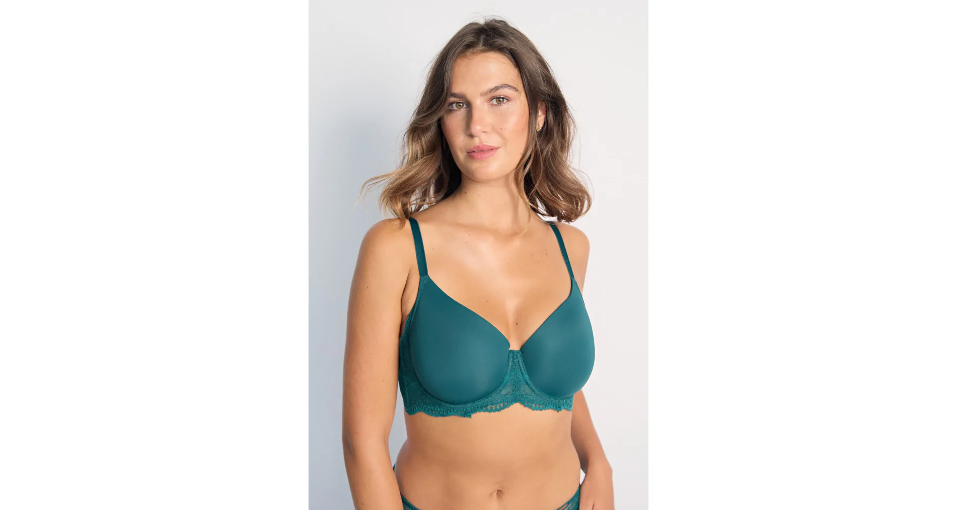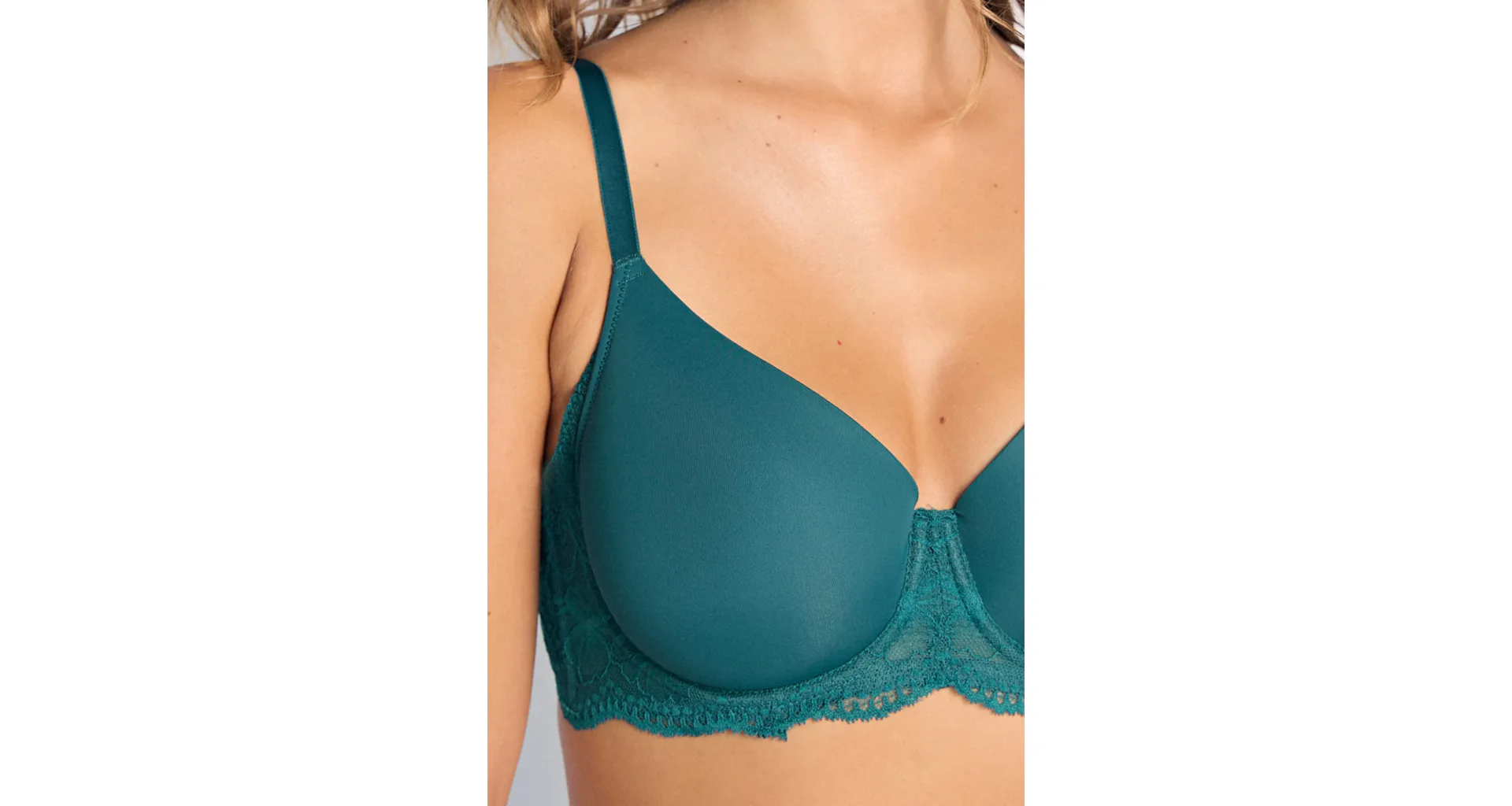Podprsenka Dorina v zelené barvě s kosticemi zaujme na první pohled romantickou krajkou. Vyrobena je z ekologického mikrovlákna s krajkou. Dopřejte si maximální komfort při celodenním nošení. Vyztužená podprsenka poskytne poprsí potřebnou oporu a udrží ňadra pevně na místě. K této podprsence si lze pořídit kalhotky ve stejném designu.