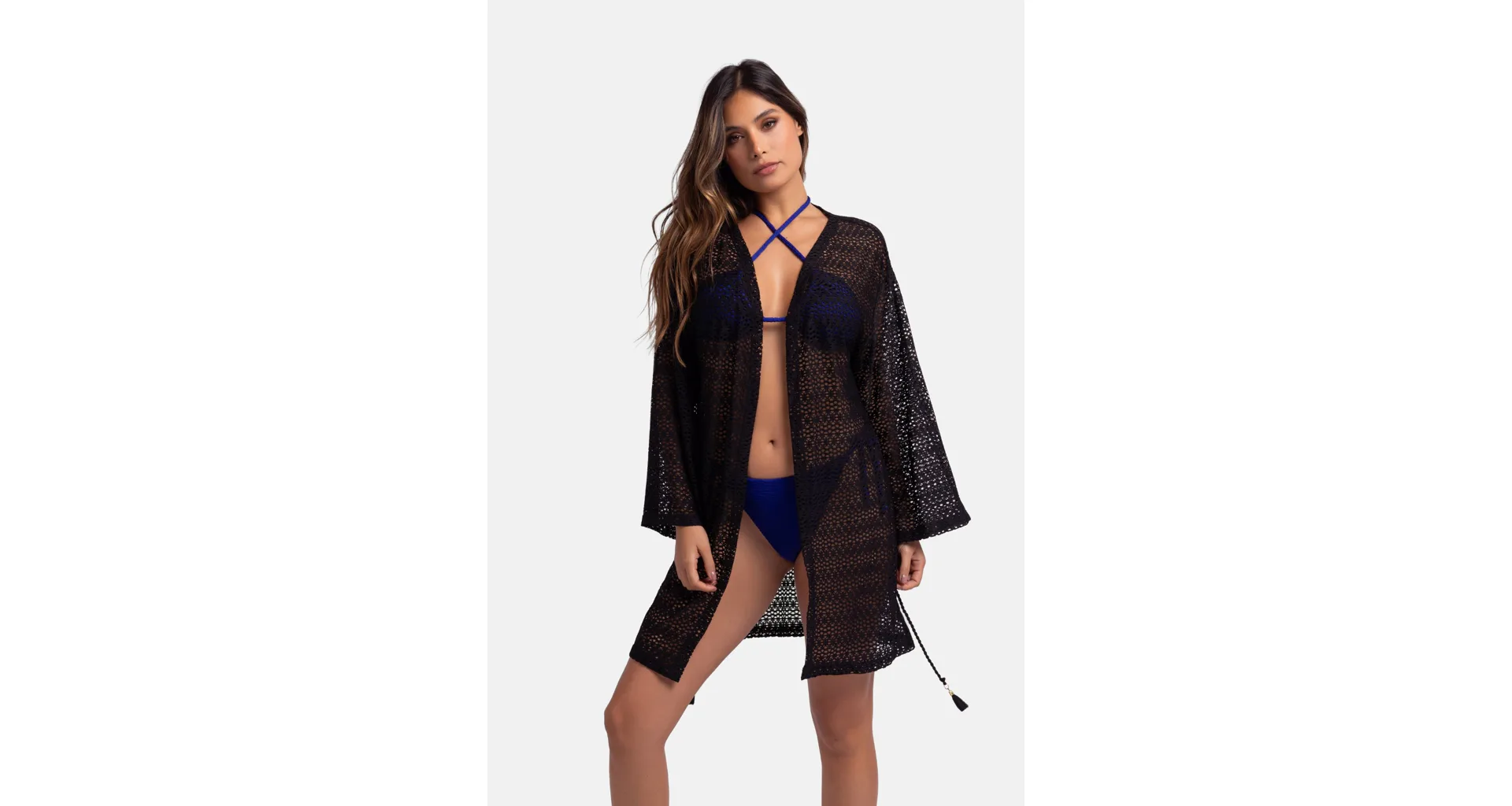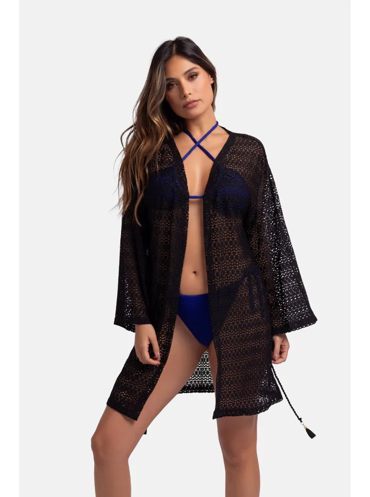 Tunika s dlouhým rukávem má praktické zavazování v pase na šňůrku se stylovými střapci, lze jej nosit také rozvázaný pro ležérní styl. Zaujme na první pohled elegantním provedením a okouzlí vás svou lehkostí. Letní háčkovaný přehoz má volnější střih, zakryje drobné nedostatky a zároveň podtrhne vaši ženskost. Pořiďte si nadčasový doplněk pro letní dny, plážový přehoz je možné zakoupit i v bílé barvě.