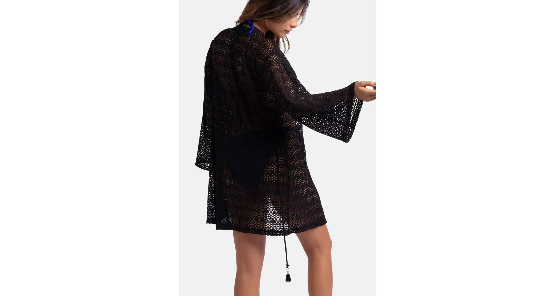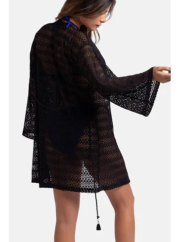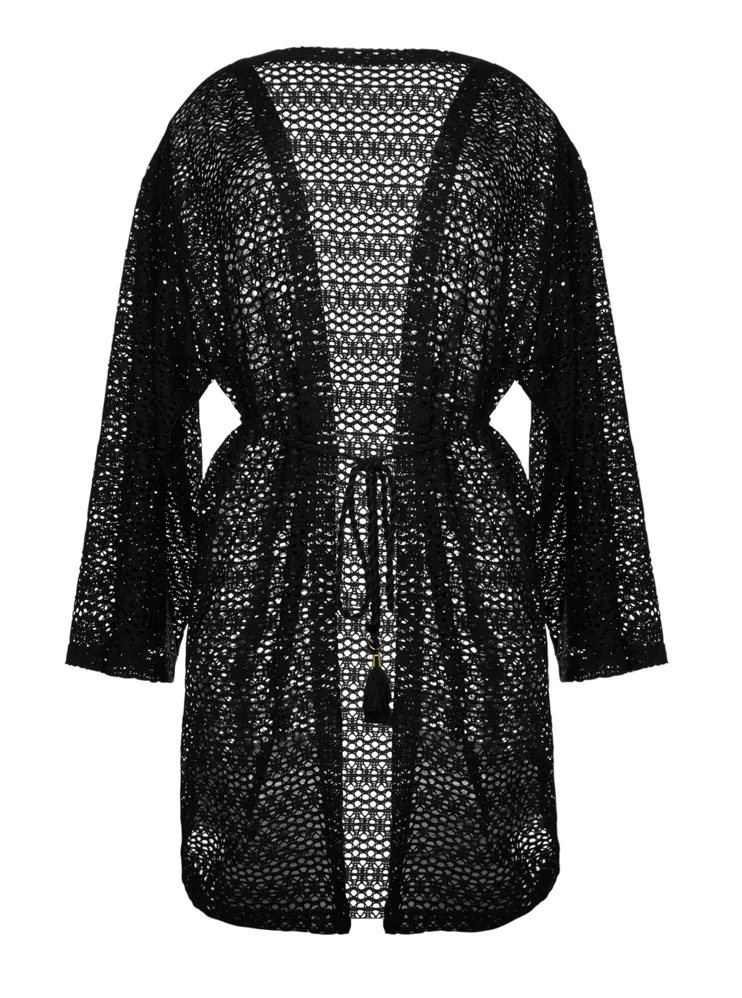 Háčkovaná plážová tunika černá
