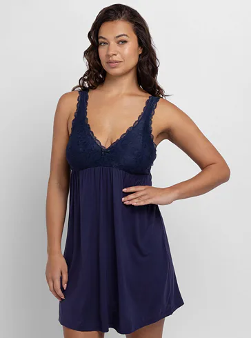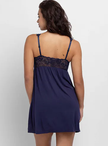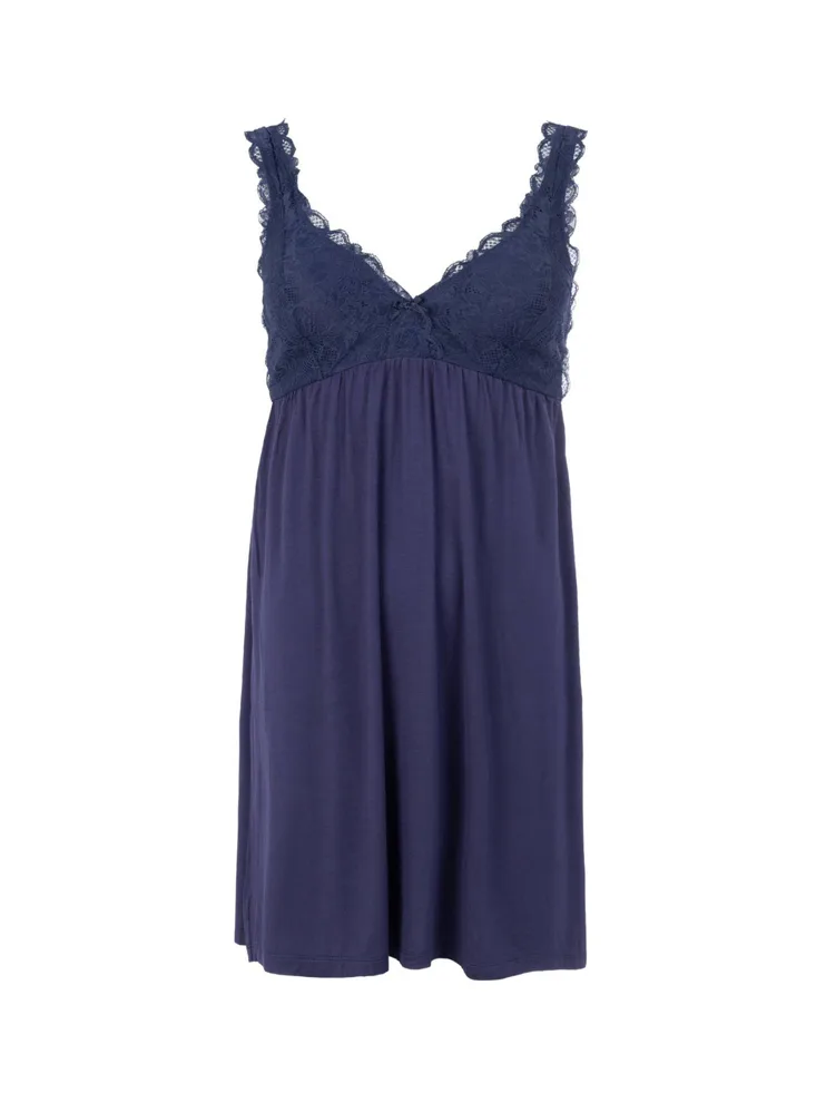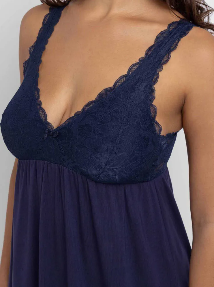 Dámská noční košile v tmavě modré barvě vás uchvátí maximálním pohodlím a elegantním vzhledem. Košilka s délkou nad kolena je ideální nejen na spaní, ale také jako atraktivní domácí oděv.