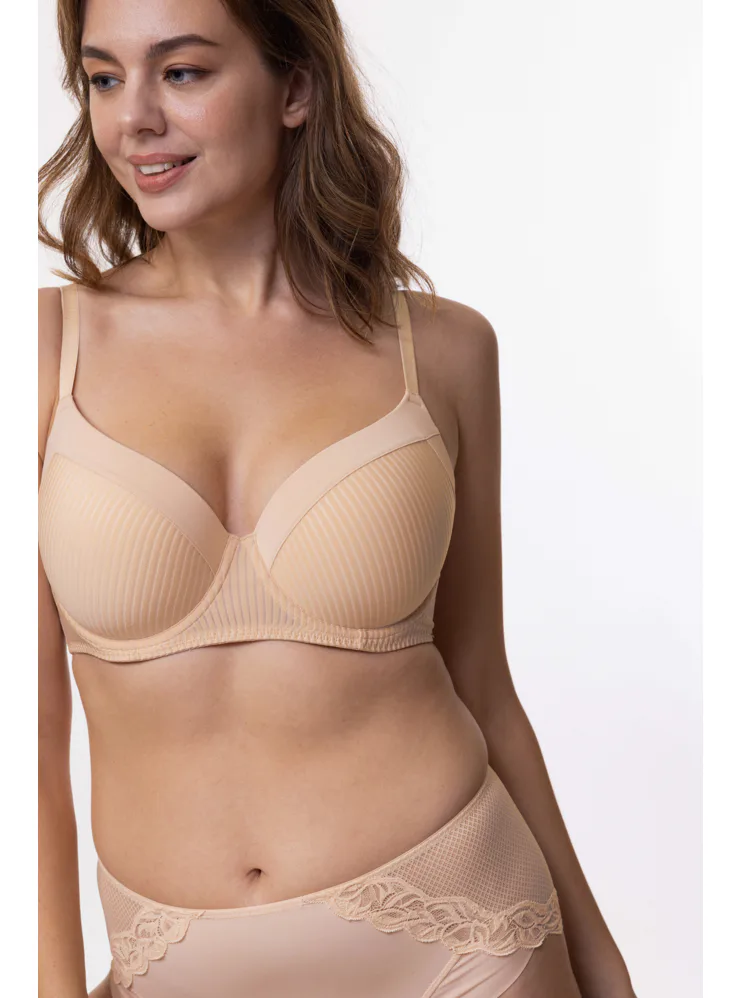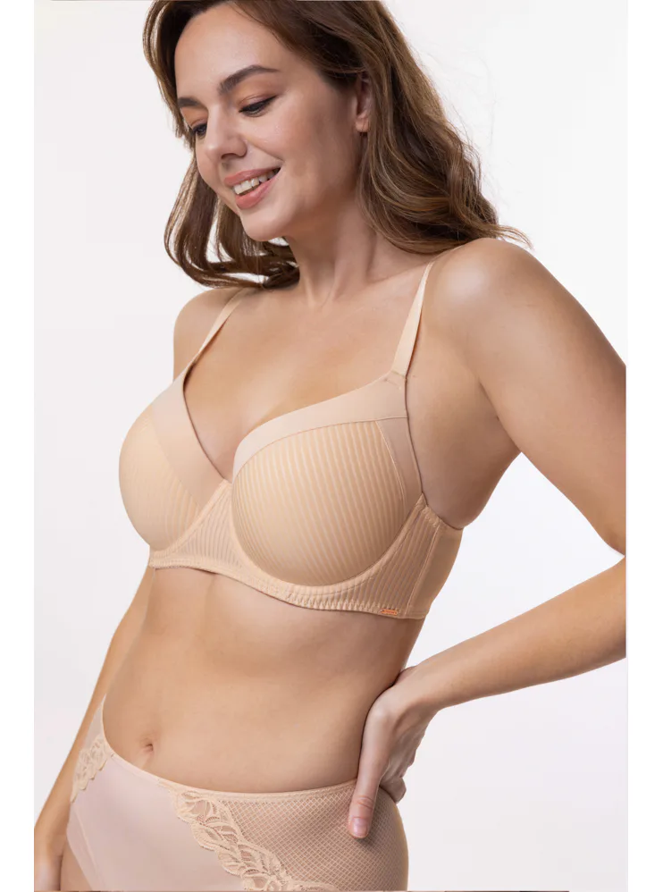 Tělová podprsenka s uzavřeným střihem perfektně vytvaruje poprsí a zajistí pohodlí při celodenním nošení. Díky hladkým košíčkům se nebude rýsovat pod oblečením.