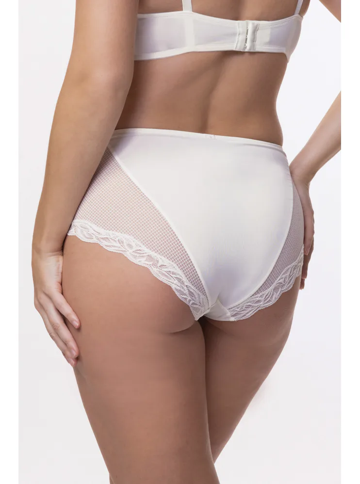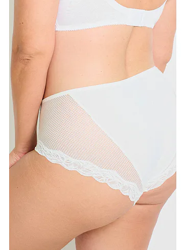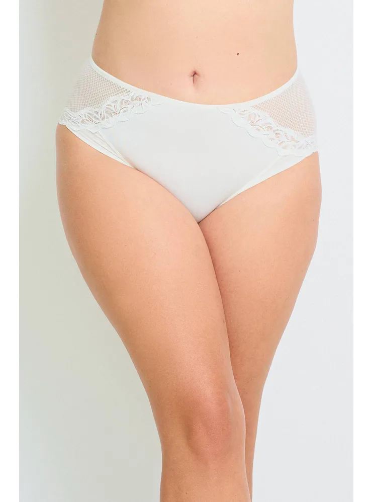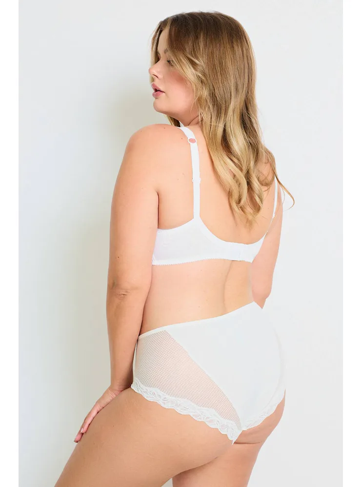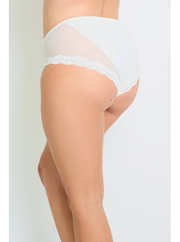 Kalhotky Dorina jsou vyrobeny z udržitelného materiálu a pyšní se certifikátem kvality a nezávadnosti Oeko-Tex® Standard 100. Přizpůsobí se tvaru vašeho těla a nikde se nezařezávají. Rafinovaná síťovina s krajkou dodává kalhotkám eleganci a podtrhne vaše ženské křivky. Mají zesílený hygienický bavlněný klín. Kalhotky v krémové barvě lze pořídit až do velikosti 3XL.