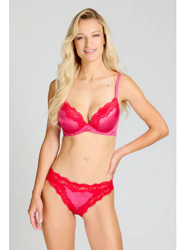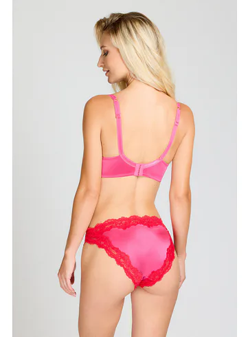 Dopřejte si dokonale padnoucí kalhotky se středně vysokým pasem, které plně schovají zadeček. Zaujmou více vykrojenou přední částí lichotící ženským křivkám. Hladký saténový efekt působí luxusně a krajkové lemování dodává kalhotkám šmrnc.