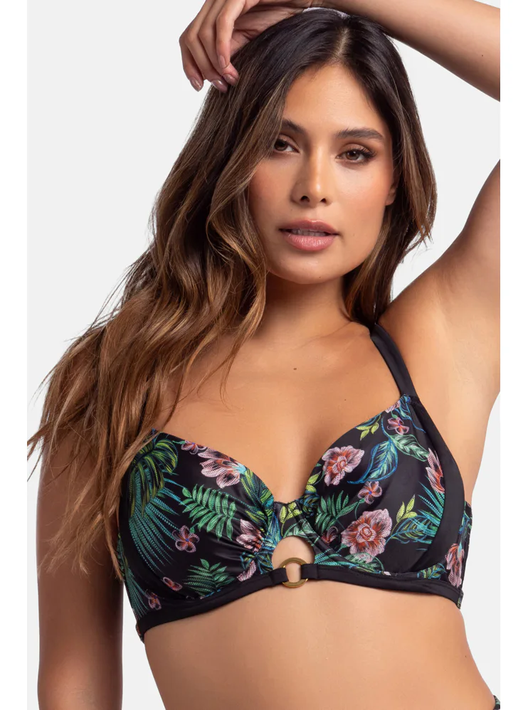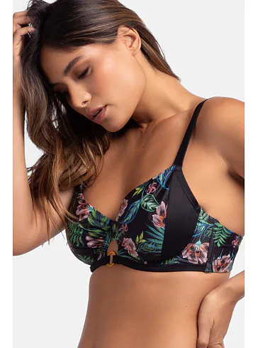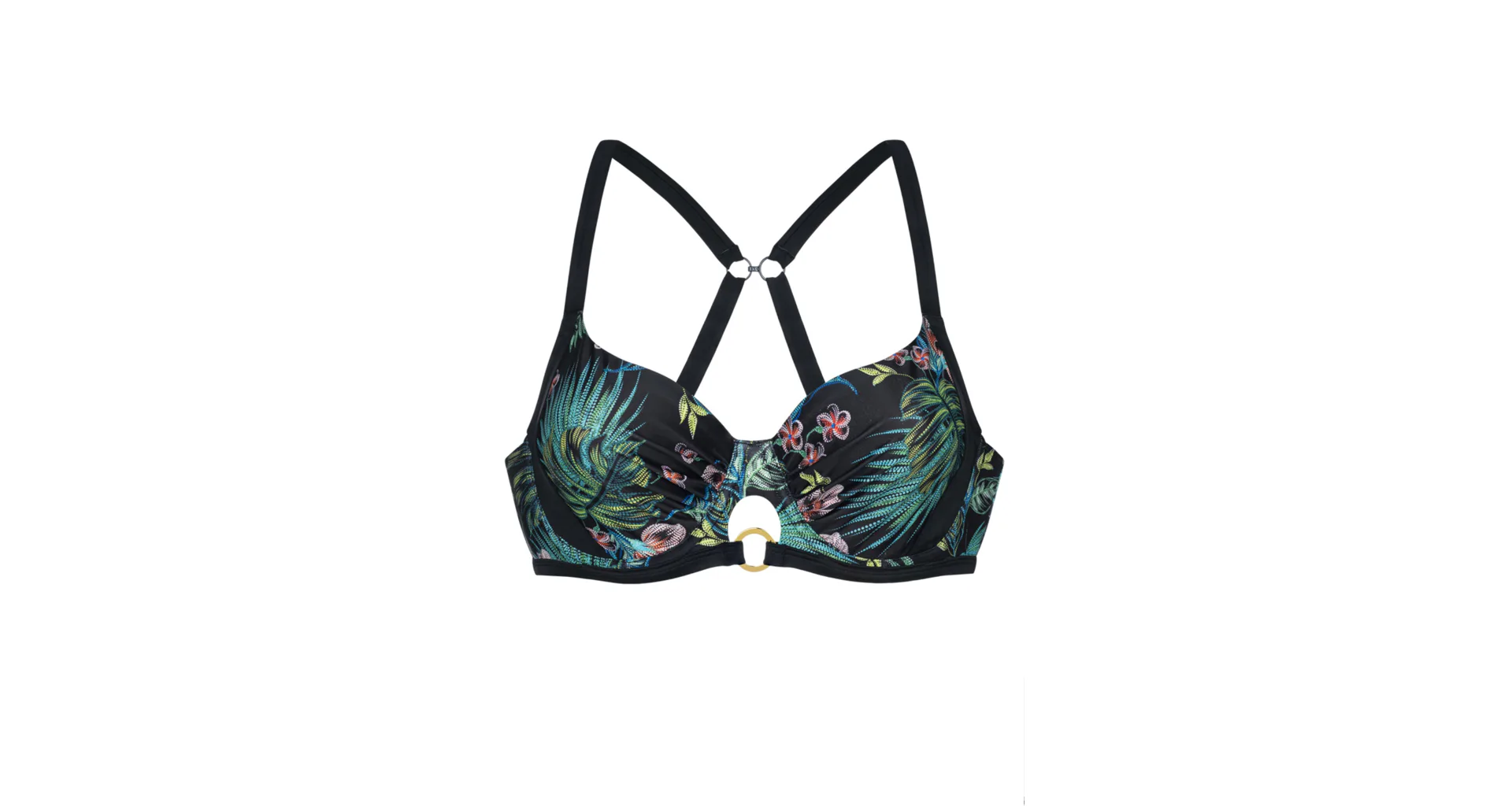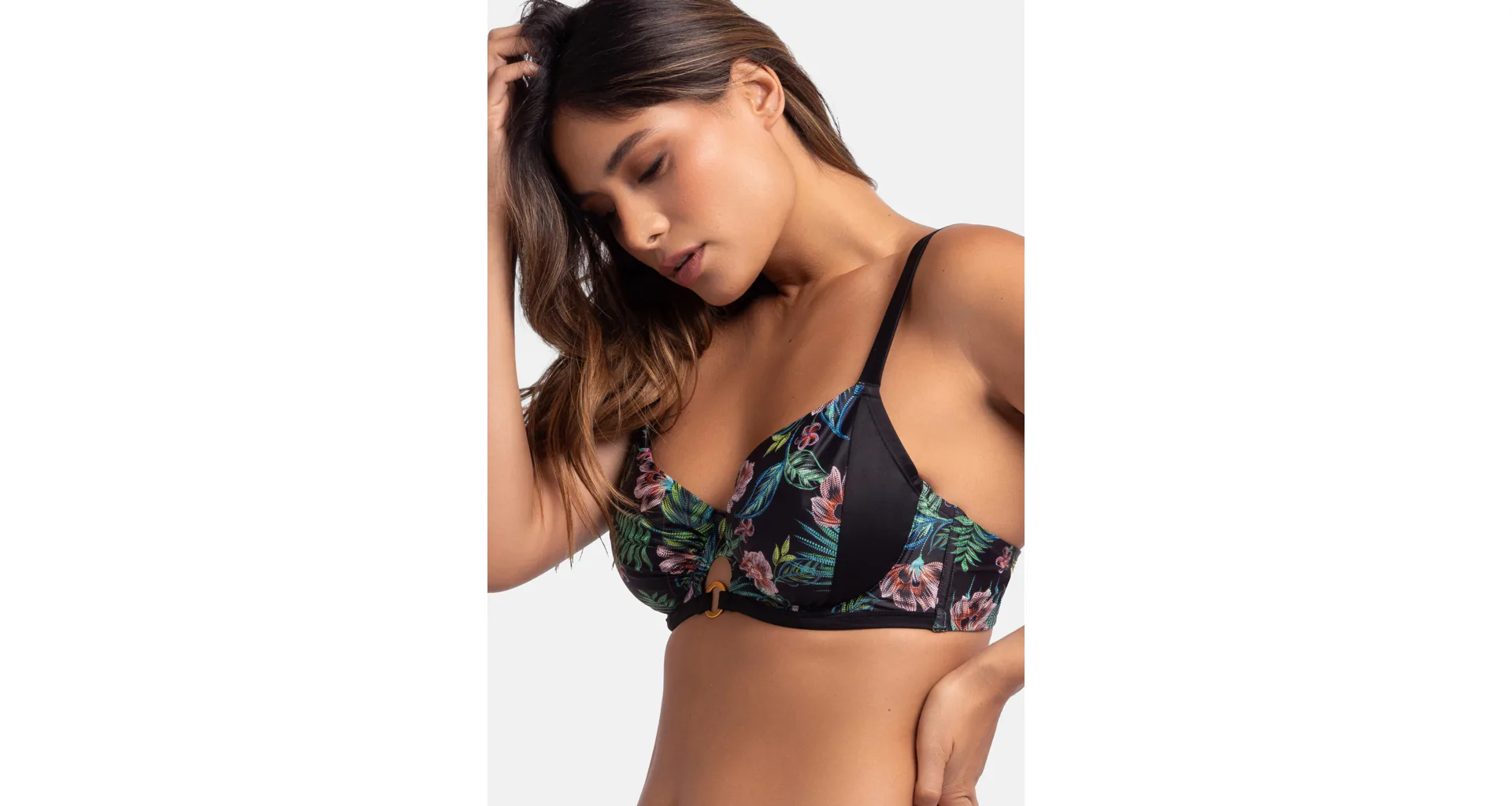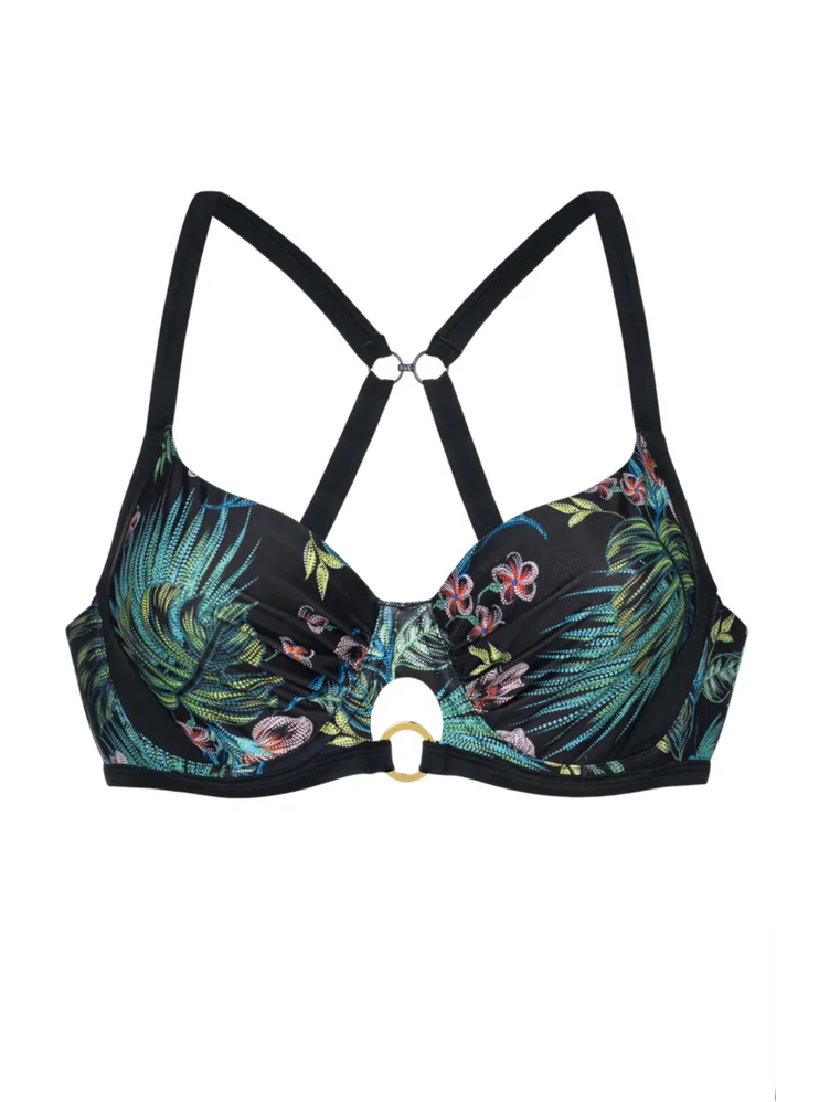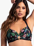 Nevyztužená plavková podprsenka s kosticí poskytne poprsí potřebnou podporu a vytvoří přirozený vzhled. Ideální pro velká a těžká prsa. Podprsenka zaujme prstencovým doplňkem ve výstřihu a barevným letním vzorem, který oživí váš plážový look. Má nastavitelná ramínka, zadní zapínání na sponu a uzavřenější střih, který bezpečně podrží vaše prsa na místě. Získejte v plavkách dokonalé bronzové opálení a užijte si letní dny na maximum. K této podprsence si lze pořídit vyšší plavkové kalhotky s letním vzorem a vytvořit tak dokonalý plážový outfit.