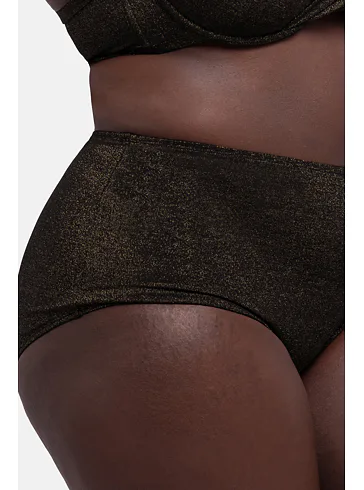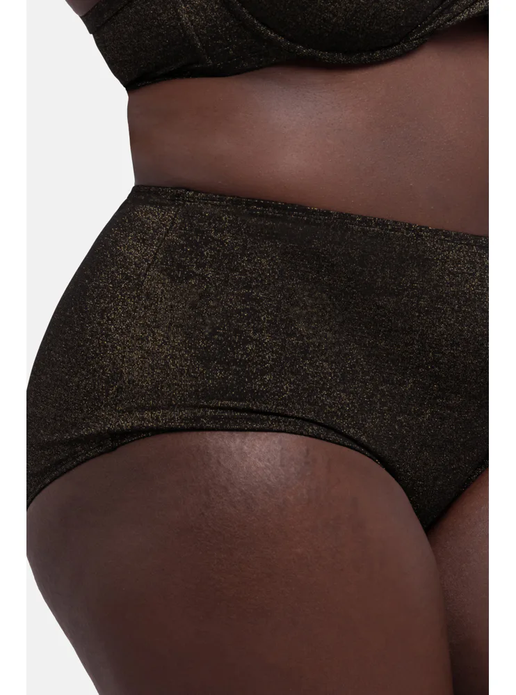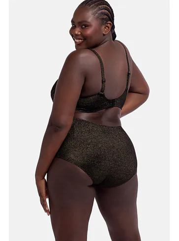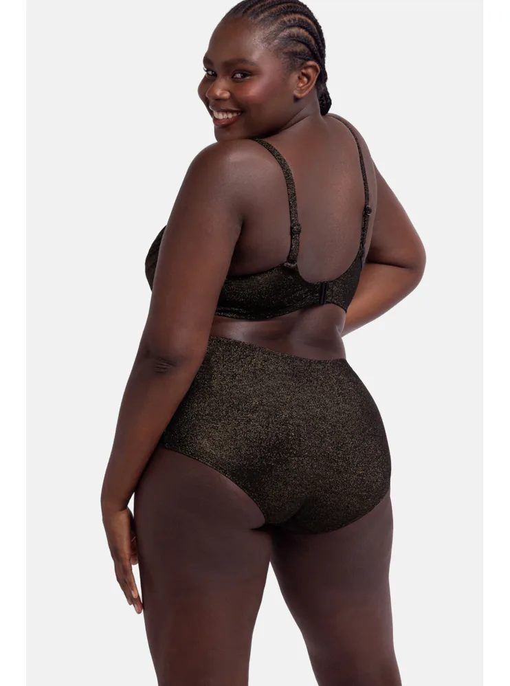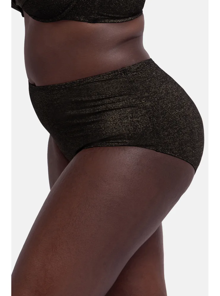 Černé plavky zaujmou třpytivým efektem a zvýšeným pasem. Zpevní oblast bříška a zeštíhlí pas. Lurexový materiál díky svému metalickému efektu působí luxusně a elegantně, vyniká odolností proti oděru a roztržení. Lurexové plavky jsou nadčasové a dopřejí vám pohodlí ve vodě i na pláži. Připravte se na léto a pořiďte si plavky Dorina z nové letní kolekce. K těmto plavkovým kalhotkám si můžete pořídit i plavkovou podprsenku ve stejném designu a vytvořit tak dokonalý letní komplet.