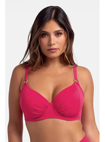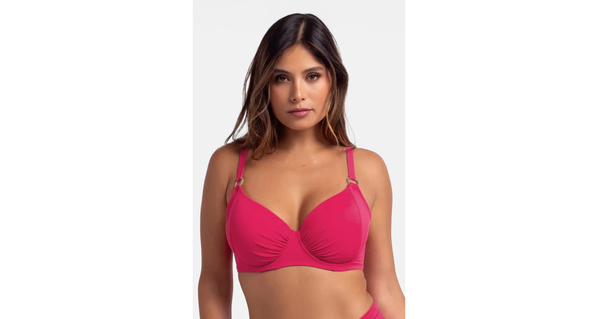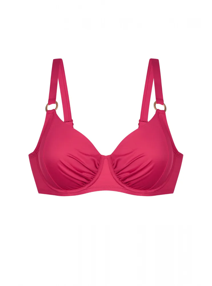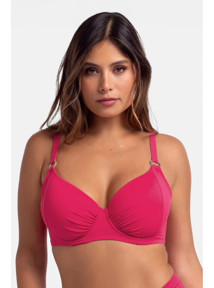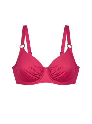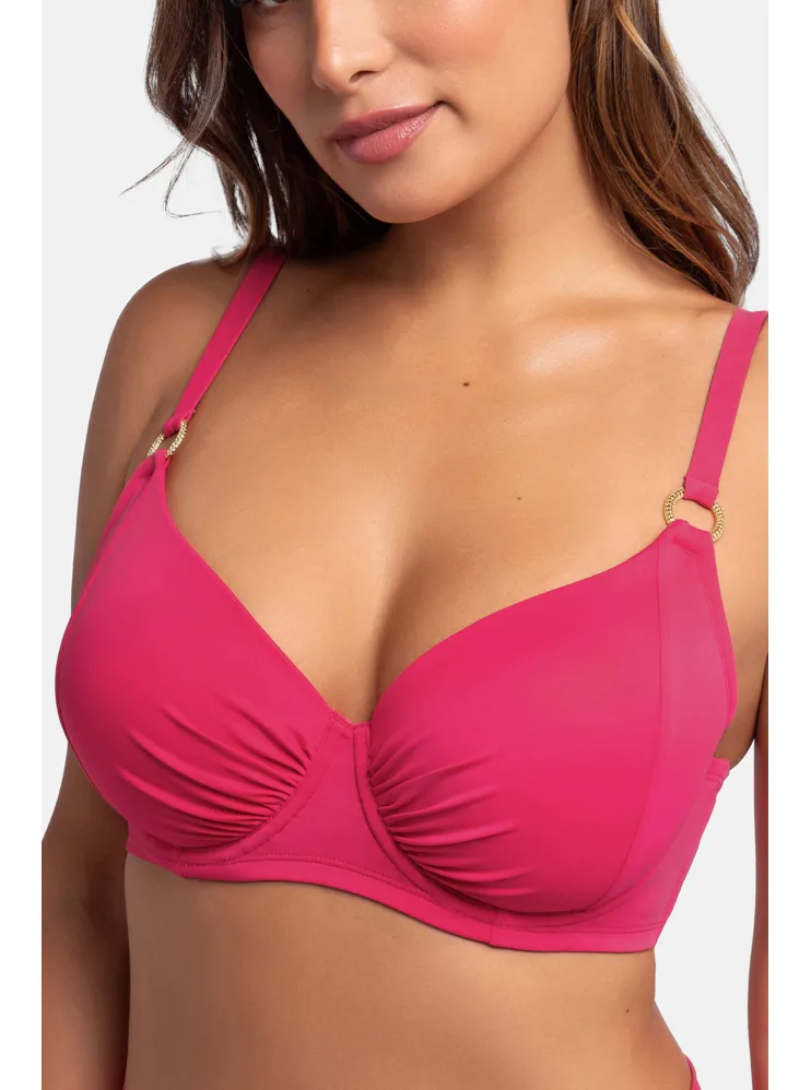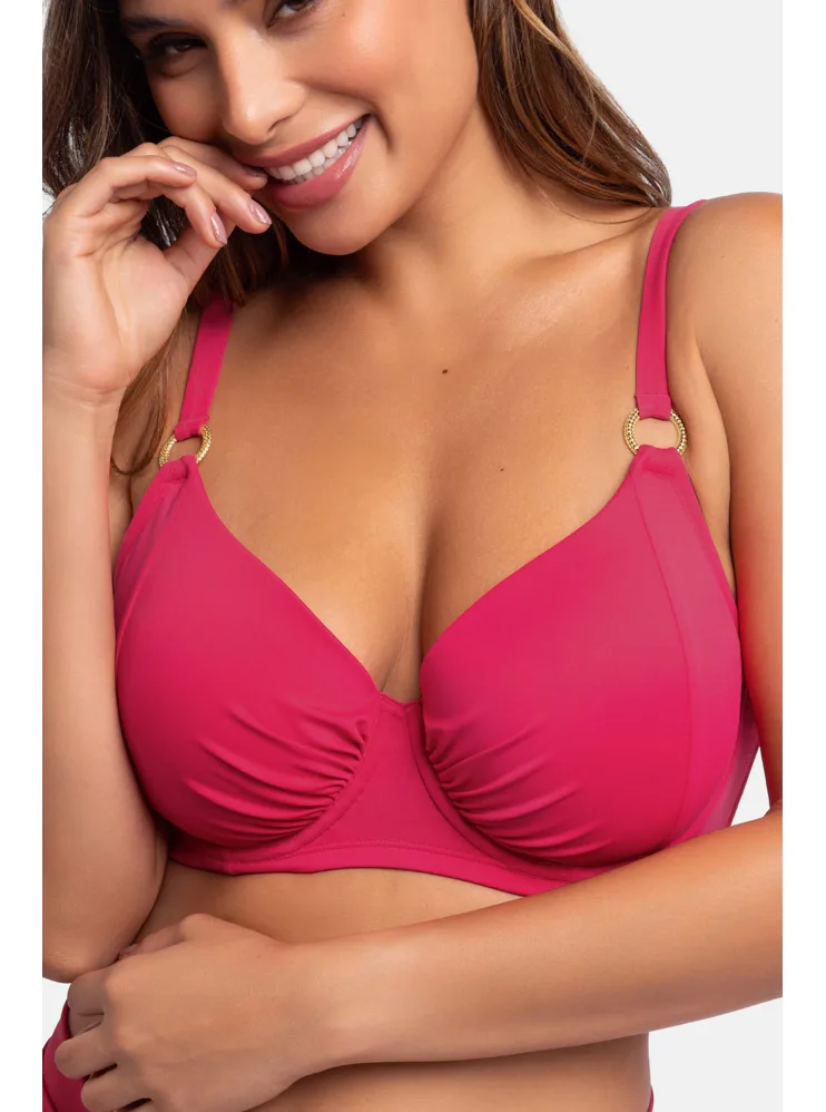 Růžová plavková podprsenka s kosticemi má uzavřenější střih, který poskytuje pevnou oporu a zajišťuje, že poprsí zůstane pevně na svém místě. Nastavitelná ramínka zaujmou ozdobnými kroužky ve zlaté barvě. Zapínání má vzadu na sponu. Nikde netlačí a nezařezává se, ideální na letní dny strávené u vody. Oživte váš plážový šatník o nevyztuženou plavkovou podprsenku Dorina, která je spojením stylu a komfortu. K této podprsence si lze pořídit plavkové kalhotky s řasením ve stejné barvě a vytvořit tak dokonale sladěný set.