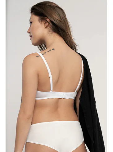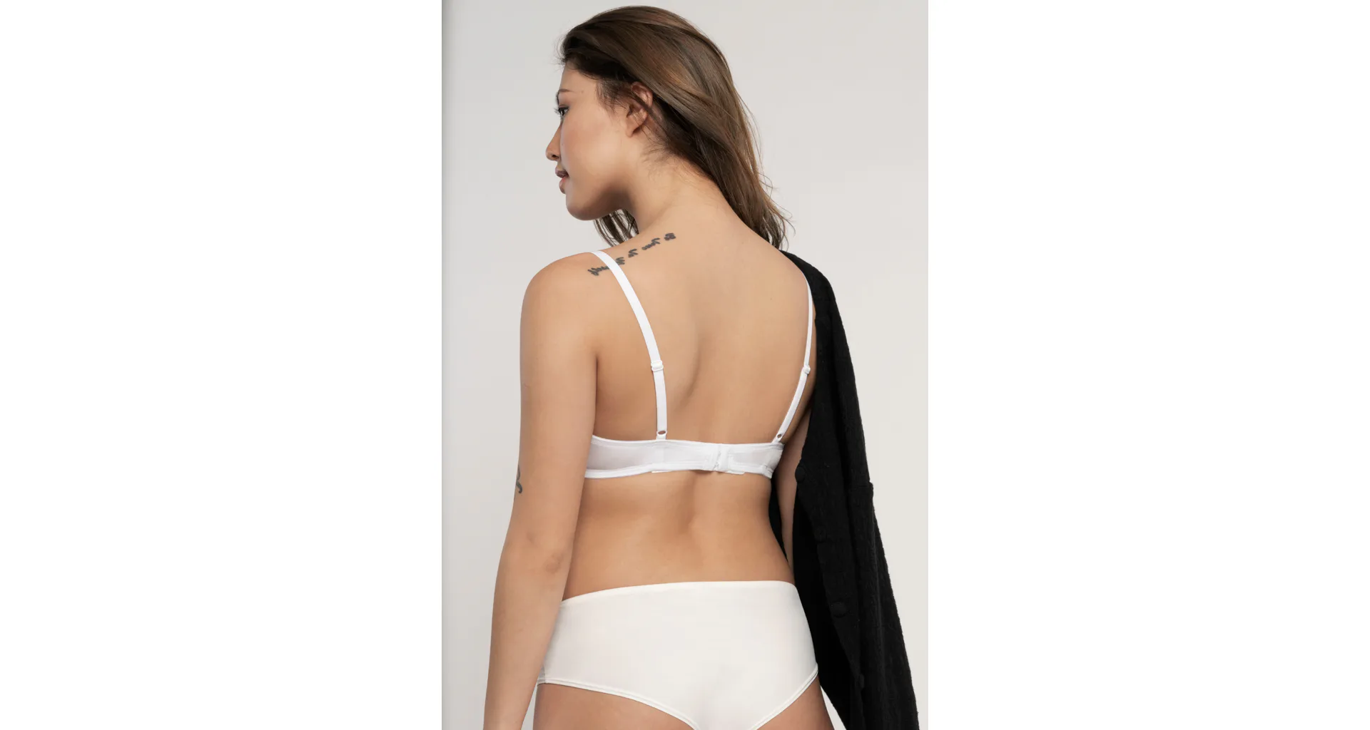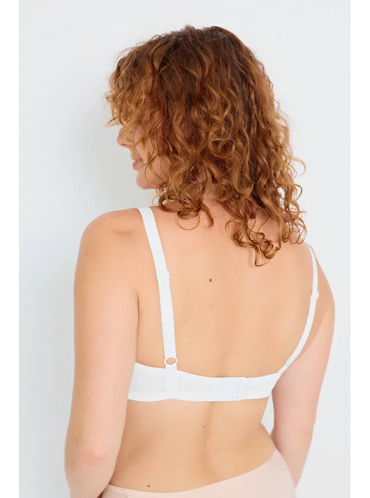 Podprsenka od německé značky Dorina je vyrobena z udržitelného materiálu a má hladké koše, díky kterým se vám nebude rýsovat ani pod přiléhavým oblečením. Bílá podprsenka v jednoduchém designu je must have kousek ve vašem šatníku. Poprsí udrží pevně na místě a vykouzlí sexy dekolt. Zapínání má vzadu na dva háčky se třemi polohami stažení, samozřejmostí jsou nastavitelná ramínka. Ideální pro různé příležitosti, od každodenního nošení po formálnější akce.