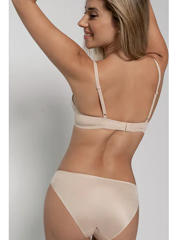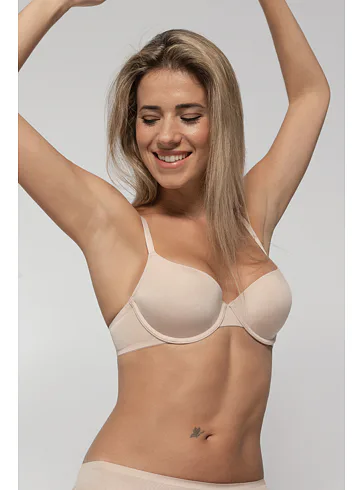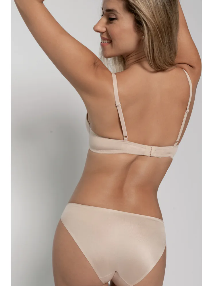 Podprsenka od německé značky Dorina je vyrobena z udržitelného materiálu a má hladké koše, díky kterým se vám nebude rýsovat ani pod přiléhavým oblečením. Tělová podprsenka v jednoduchém designu je must have kousek ve vašem šatníku. Poprsí udrží pevně na místě a vykouzlí sexy dekolt. Zapínání má vzadu na dva háčky se třemi polohami stažení, samozřejmostí jsou nastavitelná ramínka. Ideální pro různé příležitosti, od každodenního nošení po formálnější akce.