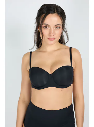 Balkonová podprsenka zaujme nastavitelným popruhem na zádech, který lze odejmout. Tence vyztužená podprsenka v černé barvě je vhodná pro menší i větší velikosti poprsí, vytvoří krásný dekolt. Má nastavitelná odepínací ramínka a variabilní zapínání na zádech pro maximální pohodlí. Podprsenku tak můžete nosit i bez ramínek, což využijete především u šatů a topů s odhalenými rameny. Balkonetku lze pořídit i v béžové barvě.