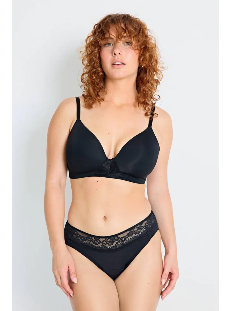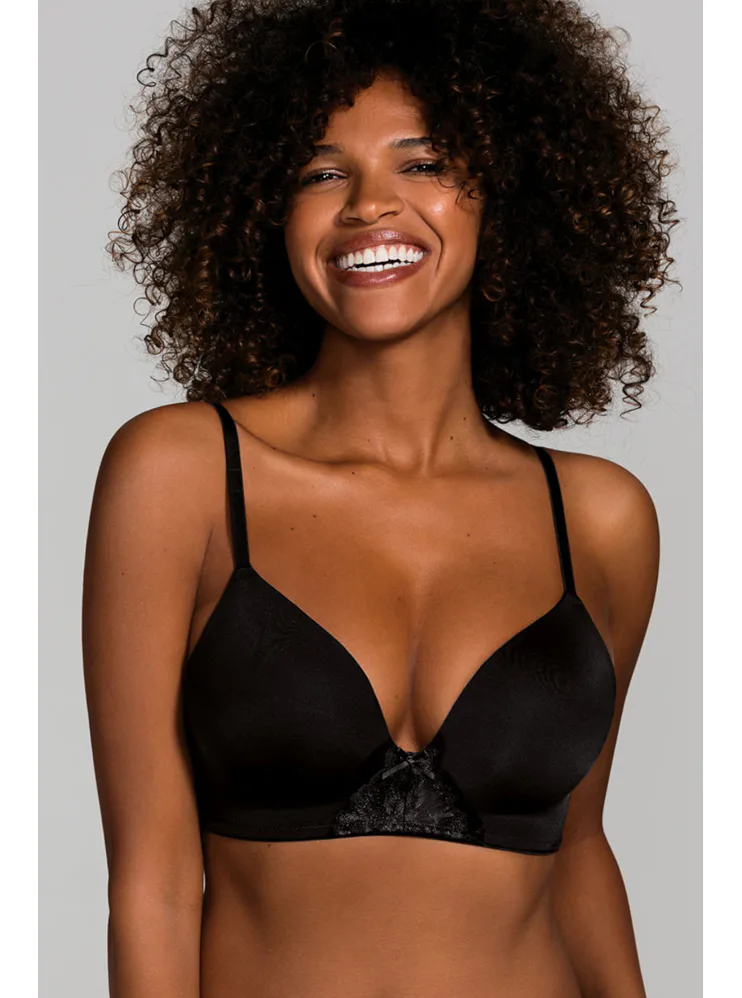 Černá podprsenka od německé značky Dorina má hladké vyztužené košíčky, které se vám nebudou rýsovat pod oblečením. Boční kostice jsou nahrazeny flexibilní výztuhou, která se lépe přizpůsobuje tvaru těla a pomáhá udržovat tvar podprsenky. Má nastavitelná ramínka a zadní zapínání na dva háčky se třemi polohami stažení. Podprsenku lze pořídit i v bílé a tělové barvě.
