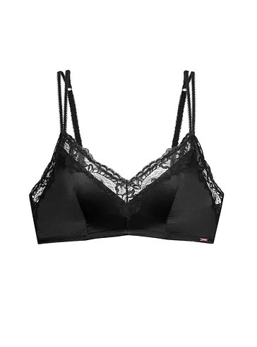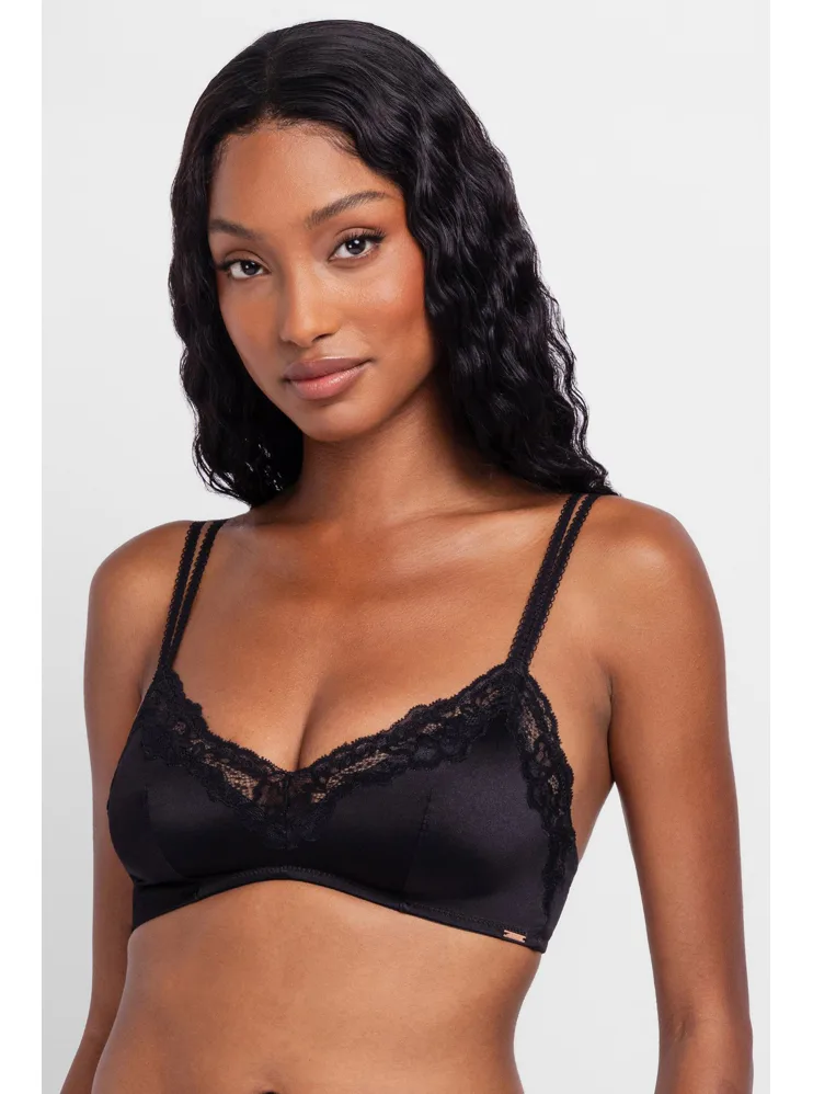 Nevyztužená podprsenka bez kostic v černé barvě perfektně padne a nijak neomezuje v pohybu. Poskytne komfort při celodenním nošení a zároveň podtrhne přirozenou siluetu. Můžete s ní i experimentovat a nosit ji jako stylový doplněk pod rozepnutou košilí nebo tílkem. Ideální pro malá a střední prsa.