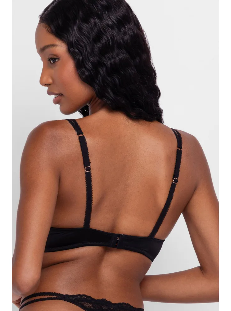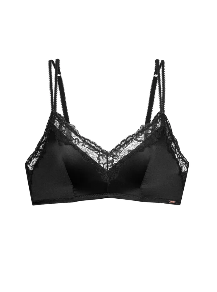 Vysoce komfortní podprsenka ve střihu bralette poskytne dostatečnou oporu a podtrhne přirozený tvar poprsí. Uchvátí vás saténovým efektem a krajkovým lemováním. Má nastavitelná ramínka a zapínání vzadu na dva háčky.
