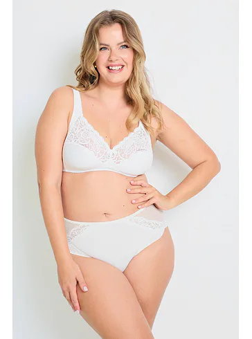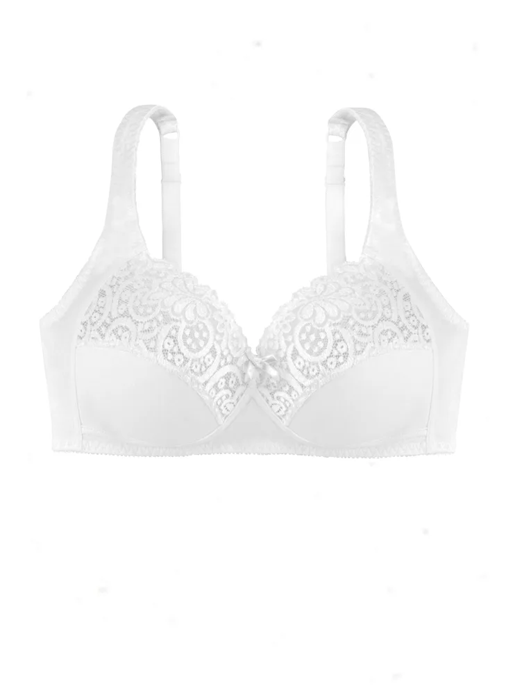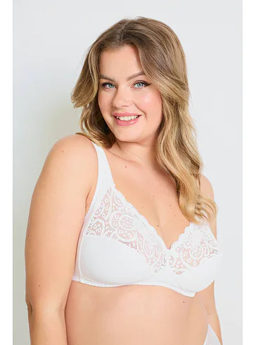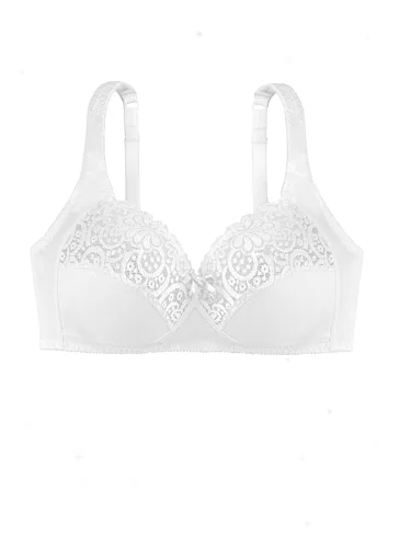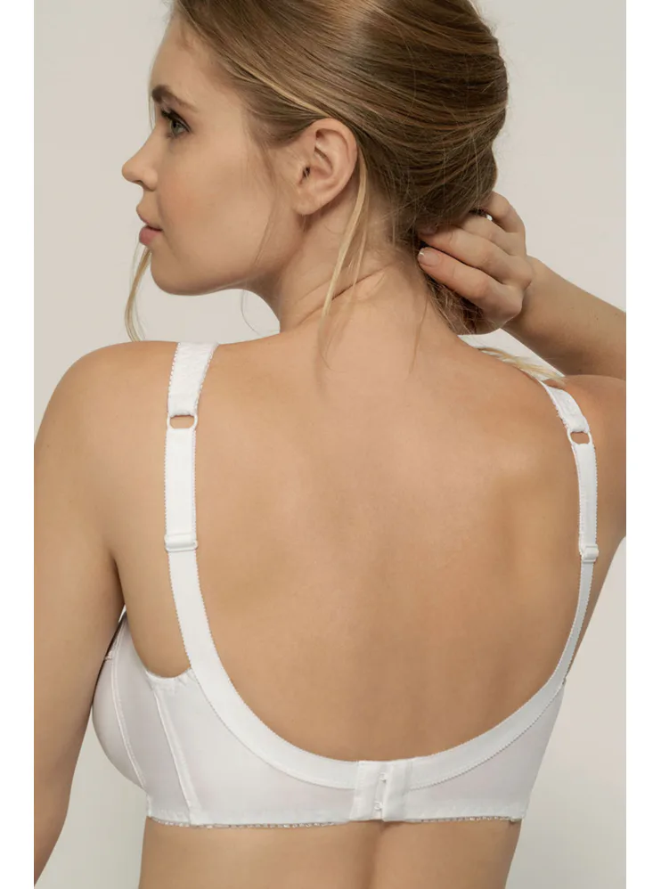 Podprsenka Dorina v bílé barvě je vyrobena z příjemné bavlny, která vyniká prodyšností, hypoalergenními vlastnostmi a při správné péči má i dlouhou životnost. Krajka dodává podprsence romantický nádech. Širší ramínka se nezařezávají a pomáhají rovnoměrně rozložit váhu prsou. Vzadu se nachází zapínání na dva háčky se třemi polohami stažení. Pořídit si lze podprsenku i v černé barvě.