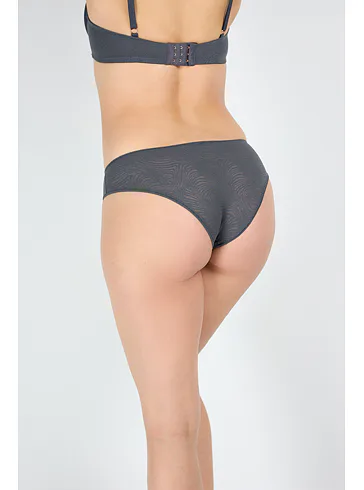 Tmavě šedé kalhotky zaujmou decentním vzorem, přizpůsobí se vašim křivkám a vynikají vysokou odolností. Průhledný design dodává kalhotkám svůdný nádech. Hygienický bavlněný klínek absorbuje vlhkost a umožňuje pokožce dýchat. Klasické kalhotky jsou univerzálním kouskem spodního prádla, který nesmí chybět v žádném šatníku. Kalhotky lze pořídit ve velikost S-XL. K těmto kalhotkám si můžete pořídit i podprsenku ve stejném odstínu a vytvořit tak dokonalý komplet.