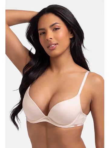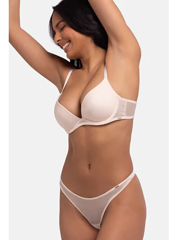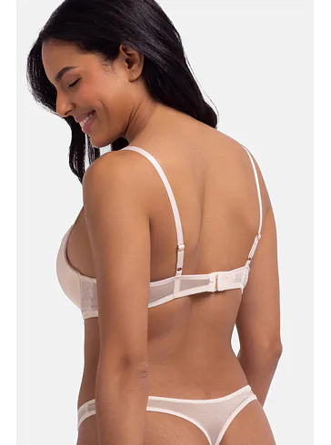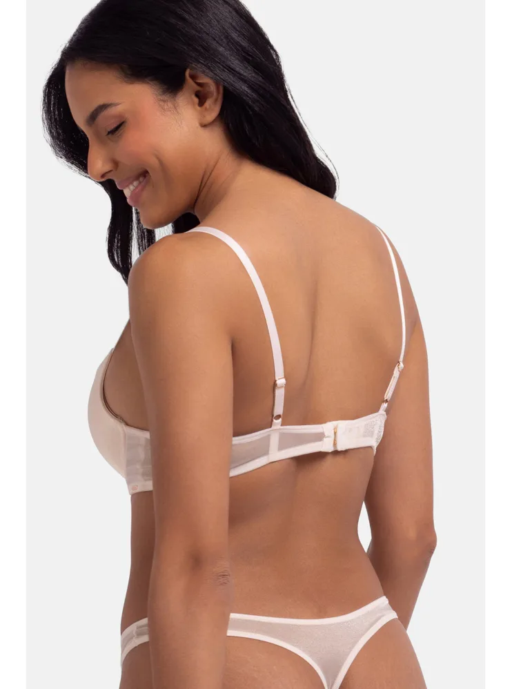 Push-up podprsenka krémová vykouzlí až o jednu velikost větší poprsí. Zaujme třpytivou síťovinou, která jí dodává luxusní a elegantní vzhled. Koše z hladkého materiálu se vám nebudou rýsovat pod přiléhavým oblečením. Nižší střed vytvoří plný dekolt i s menším poprsím, ideální do výstřihů. Nechybí nastavitelná ramínka a praktické zapínání vzadu na háčky. Perfektní volba pro ženy, které chtějí přirozeně pozvednout své poprsí. K této podprsence si můžete pořídit i tanga ve stejném designu a vytvořit tak dokonalý komplet.
