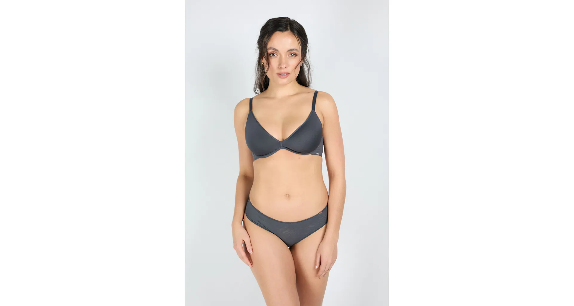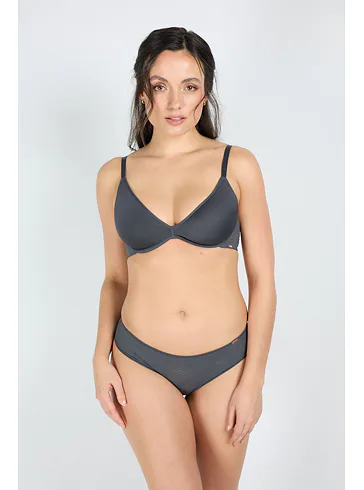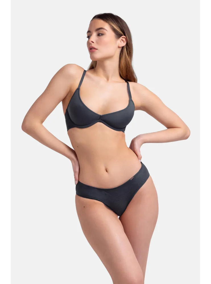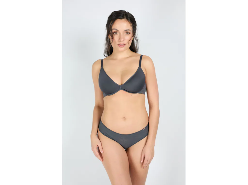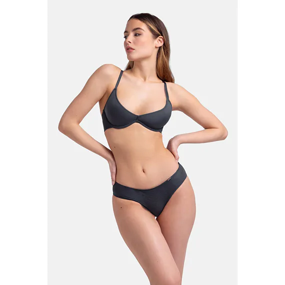 Vyztužená podprsenka tmavě šedá s technologií spacer zajišťuje dokonalou prodyšnost a působí na těle jako druhá kůže. Reaguje na změnu tělesné teploty a odvádí vlhkost. Poprsí pevně zafixuje a zachová jeho přirozený tvar. Pro zajištění maximálního komfortu má nastavitelná ramínka a zapínání vzadu na háčky. Dopřejte si pohodlí v podprsence Dorina, která podtrhne vaši ženskost. K této podprsence si můžete pořídit i klasické kalhotky ve stejném odstínu pro dokonale sladěný komplet.