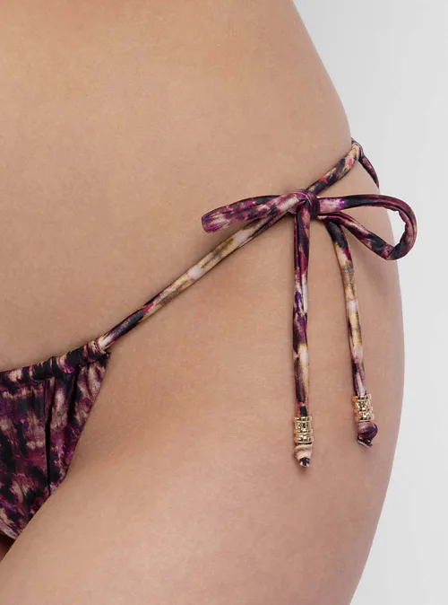 Plavkové kalhotky klasického střihu lichotí postavě, zajistí plné krytí a maximální komfort. Zaujmou letním batikovaným vzorem. Díky zavazování na bocích si kalhotky upravíte přesně podle své postavy. Ke kalhotkám lze pořídit podprsenku do setu.