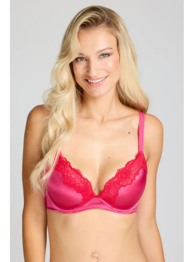Růžová podprsenka od německé značky Dorina perfektně sedí a opticky zvětší prsa. Jemně nadzvedne vaše ňadra a poskytne potřebnou oporu. Zaujme hladkým saténovým efektem, který působí luxusně a smyslně. Díky posuvným ramínkům si podprsenku snadno přizpůsobíte svým potřebám.