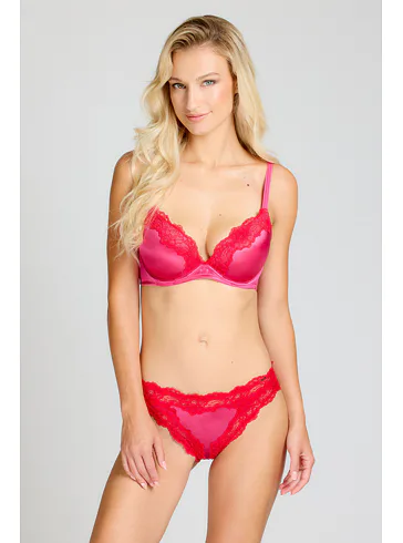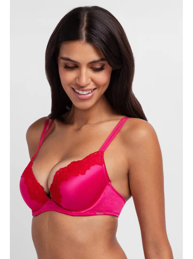 Objevte kombinaci elegance a komfortu, push-up podprsenka s nízkým středem se dokonale přizpůsobí tvaru vašeho poprsí a vytvoří krásný dekolt. Košíčky lemuje rafinovaná červená krajka. Zapínání má vzadu na dva háčky. Ideální pro každodenní nošení.