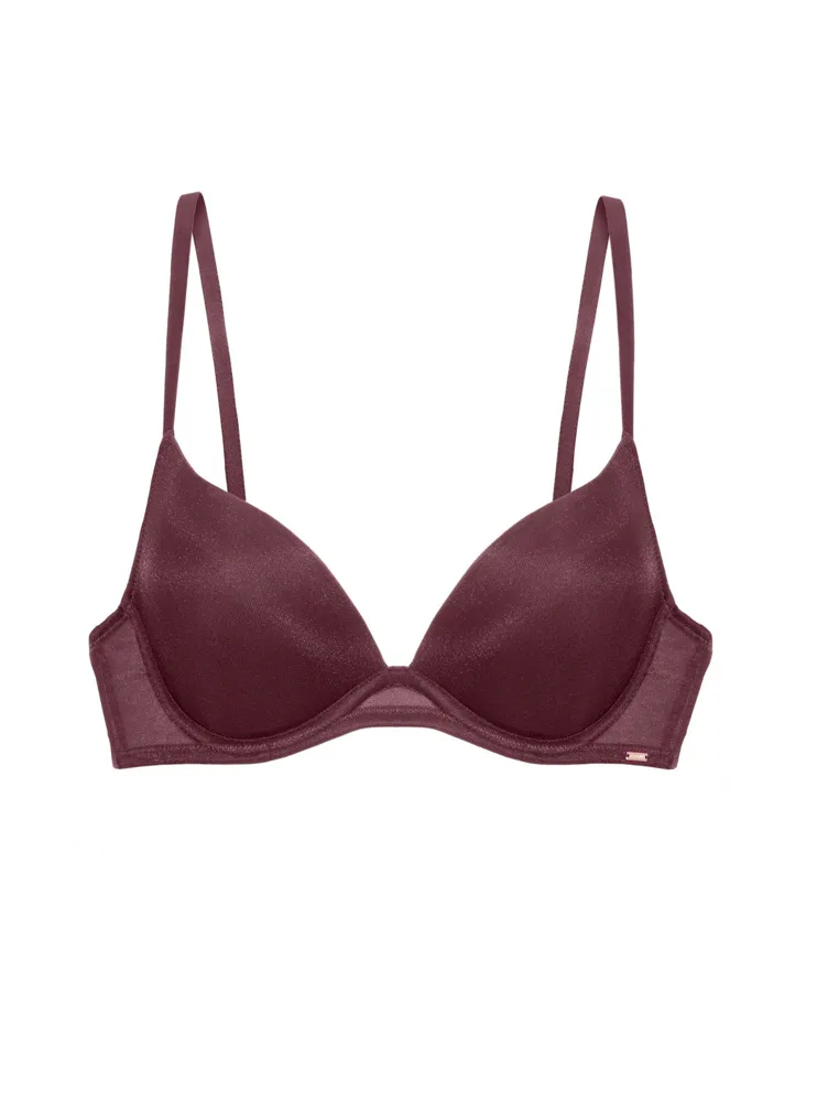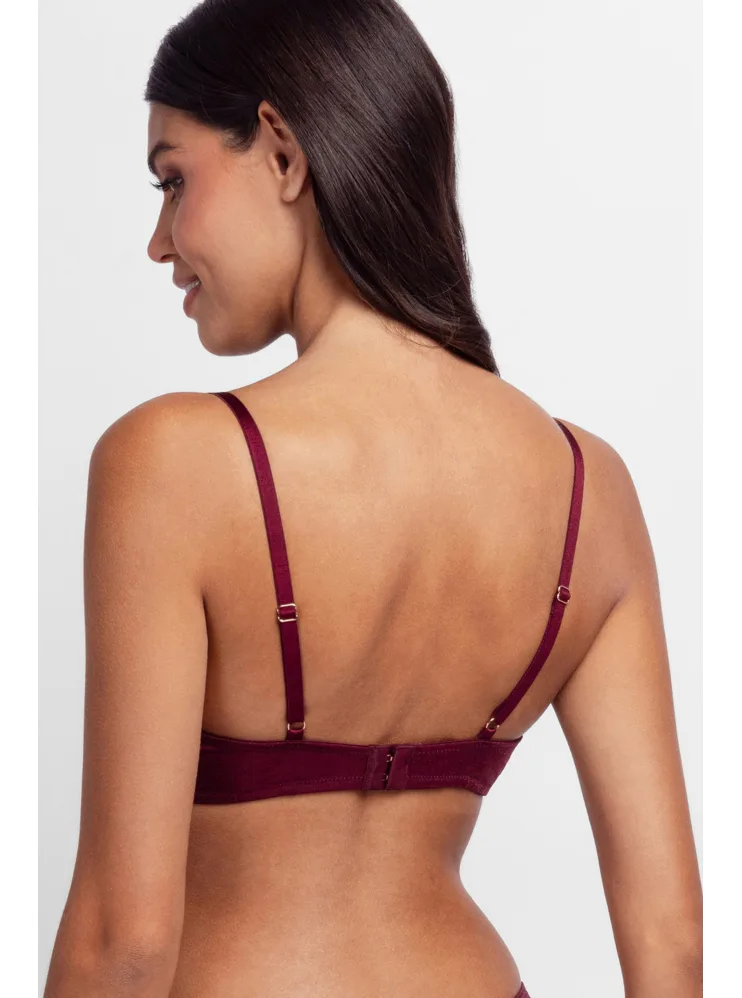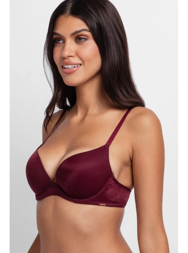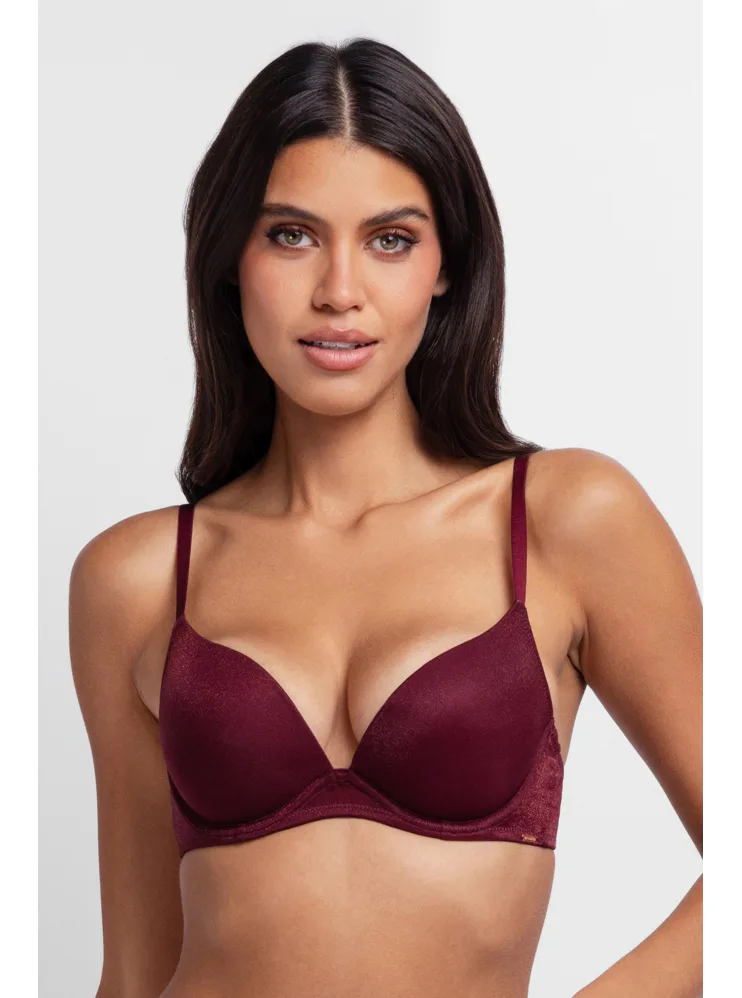 Třpytivá push-up podprsenka s kosticemi ve vínové barvě