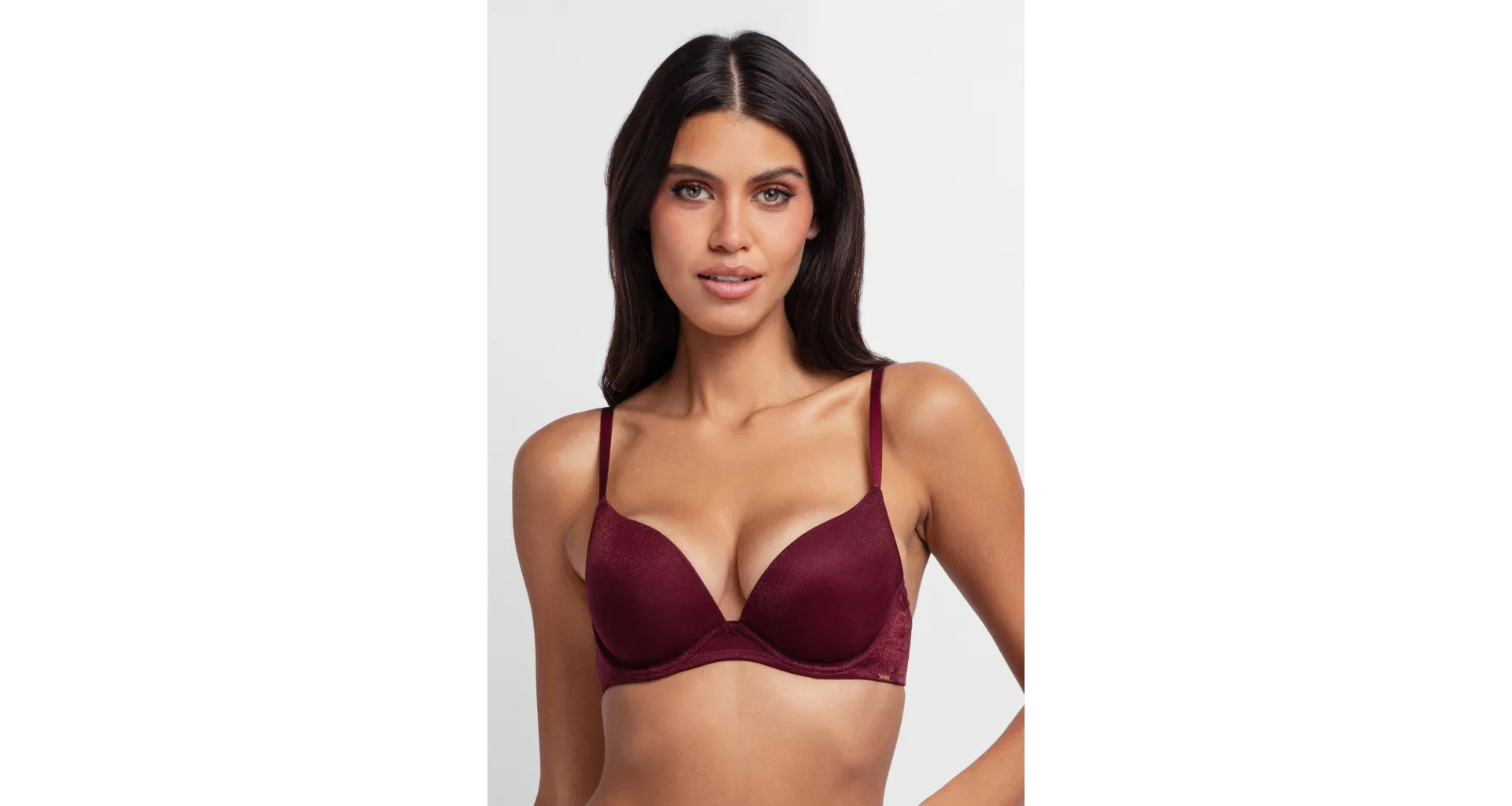 Elegantní a vysoce pohodlná push-up podprsenka udrží poprsí v požadované výšce a zajistí potřebnou oporu. Má praktické zapínání na zádech a posuvná ramínka. Nechá vaše ňadra patřičně vyniknout, ideální do hlubokých výstřihů. Vínovou podprsenku s kosticemi pořídíte od obvodu 70 cm.