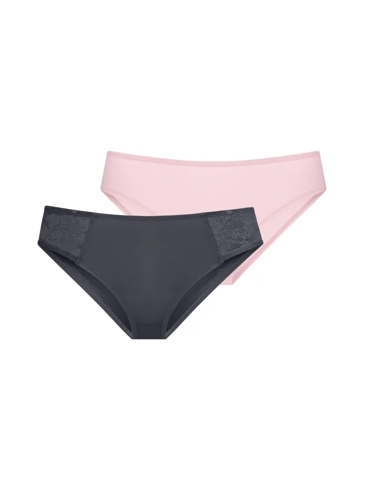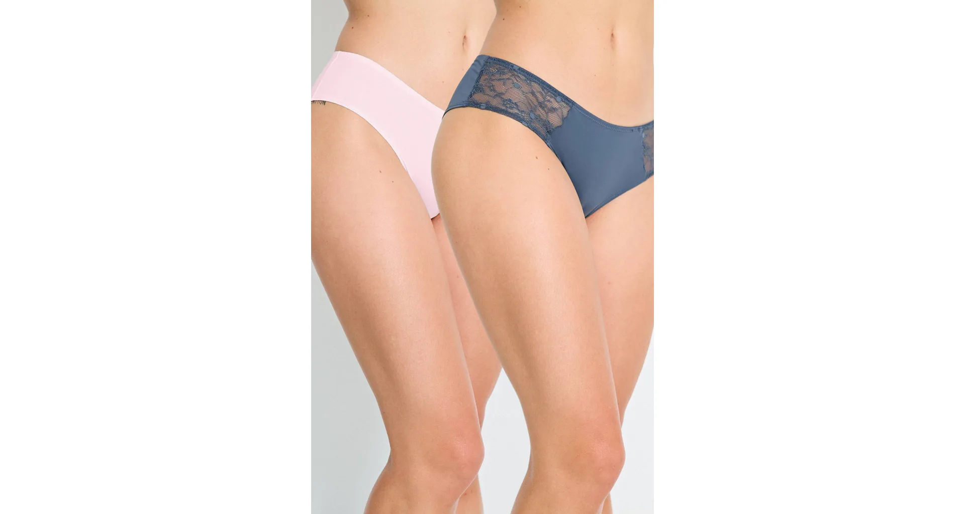 Sada klasických kalhotek zajistí maximální pohodlí. Kalhotky jsou vyrobeny z udržitelného materiálu a samozřejmostí je zesílený bavlněný klín. V sadě se nachází růžové kalhotky v hladkém provedení a šedé kalhotky s něžnou krajkou. Ke kalhotkám si lze pořídit podprsenku ze stejné kolekce.