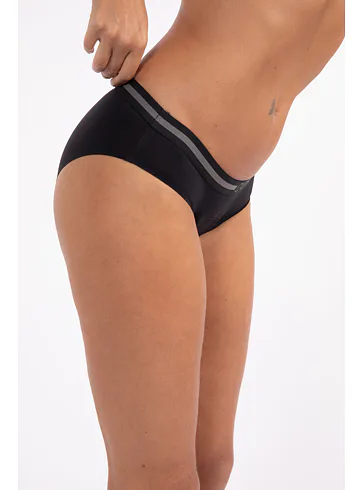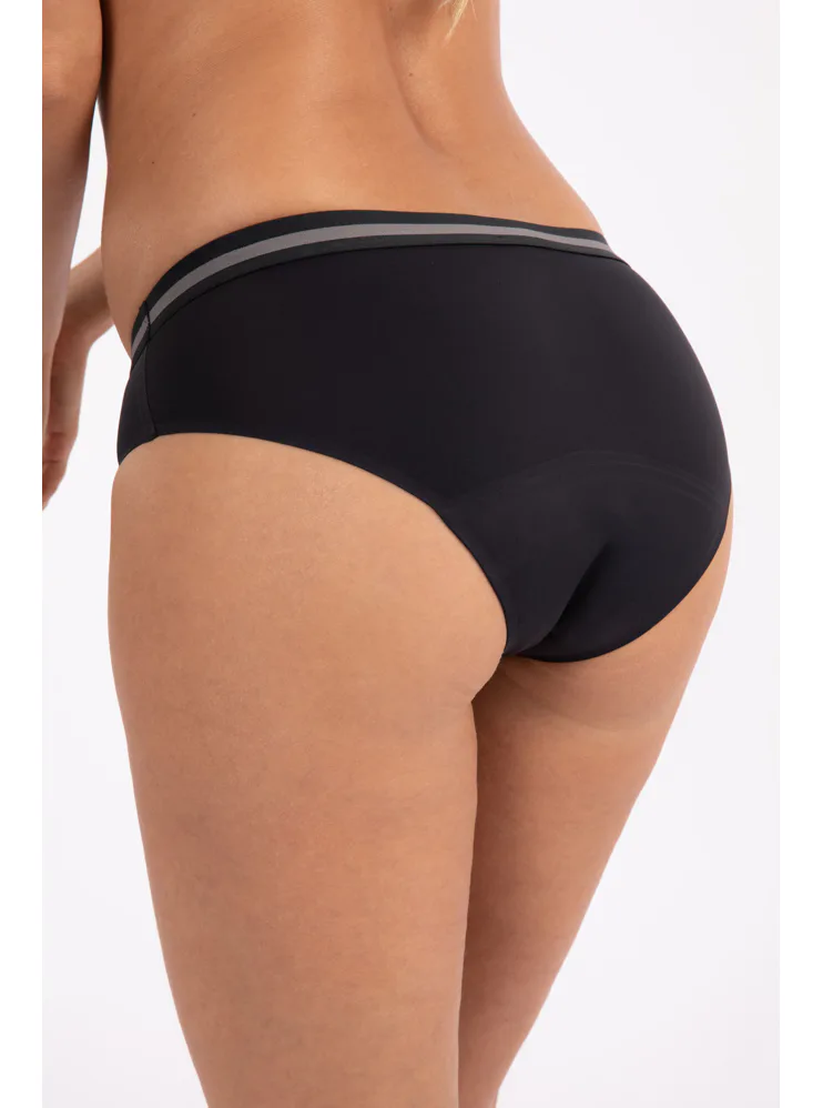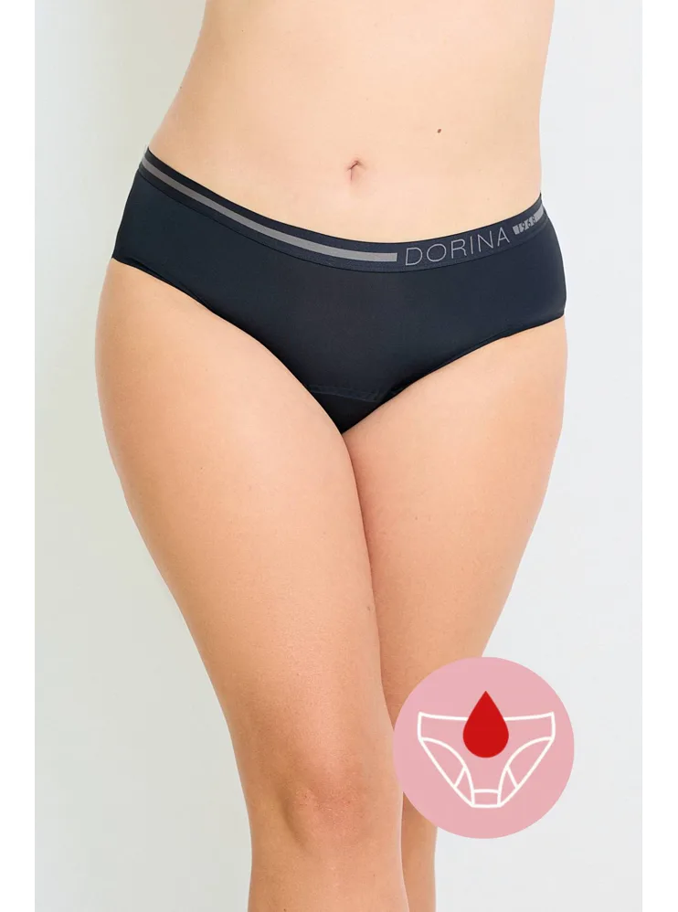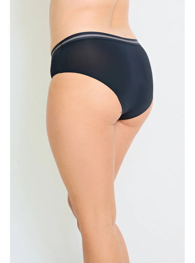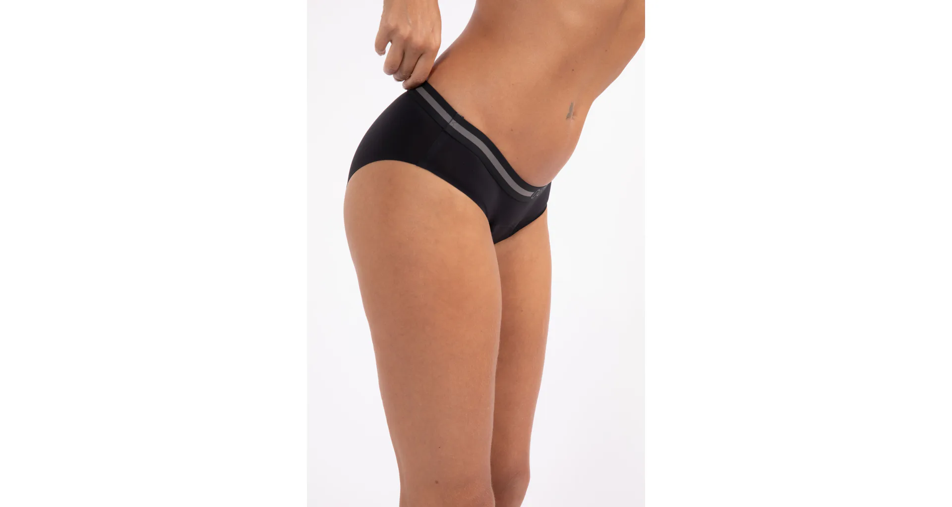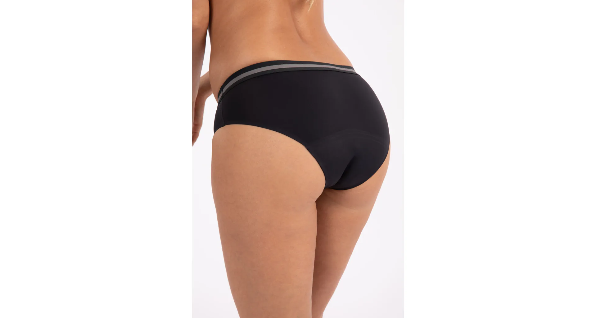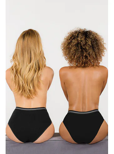 Sada denních menstruačních kalhotek obsahuje dvoje černé kalhotky z organické bavlny. Díky vysoké absorpční schopnosti můžete kalhotky nosit celý den během menstruace bez obav z protečení. Unikátní látka v širší klínové oblasti je tvořena čtyřmi vrstvami: vnitřní antibakteriální vrstvou, super savou vrstvou, voděodolnou vrstvou, která zabraňuje úniku vlhkosti a zápachu, a vnější vrstvou z recyklovaného materiálu. Absorpce denních kalhotek odpovídá dvěma běžným tampónům.
