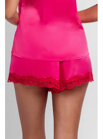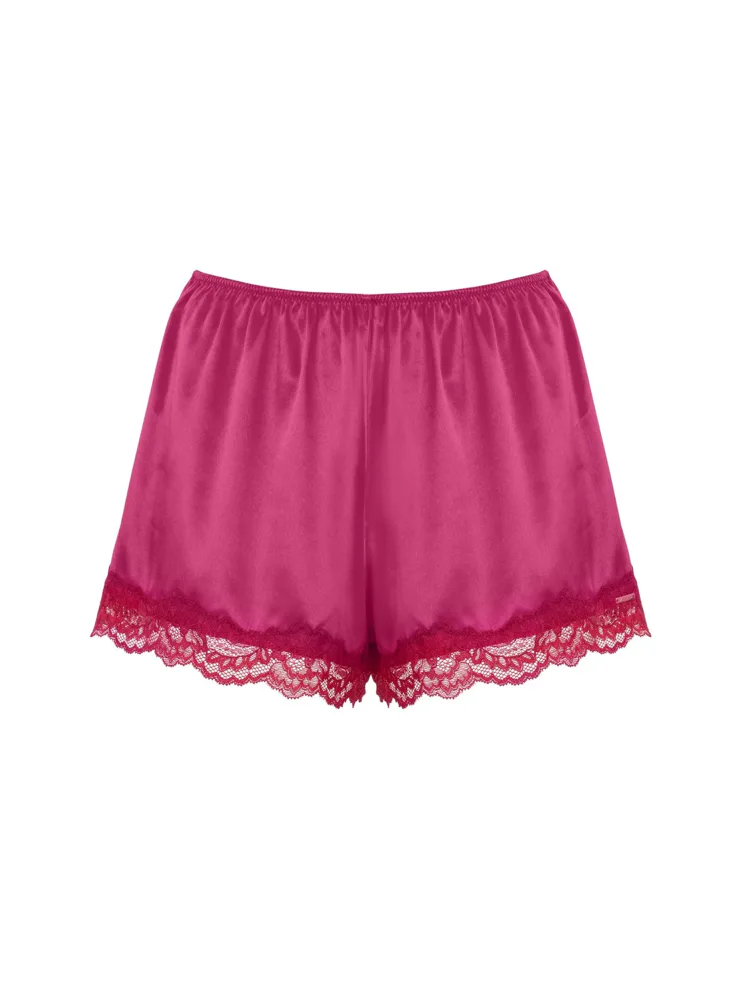 Růžové kraťasy s úzkou gumou v pase zajistí, že vám perfektně padnou a poskytnou maximální pohodlí. Vyrobeny jsou z hladkého a prodyšného saténu, který má chladivý efekt a jemně klouže po pokožce. Ke kraťasům lze pořídit i růžovou košilku a mít tak kompletní set.