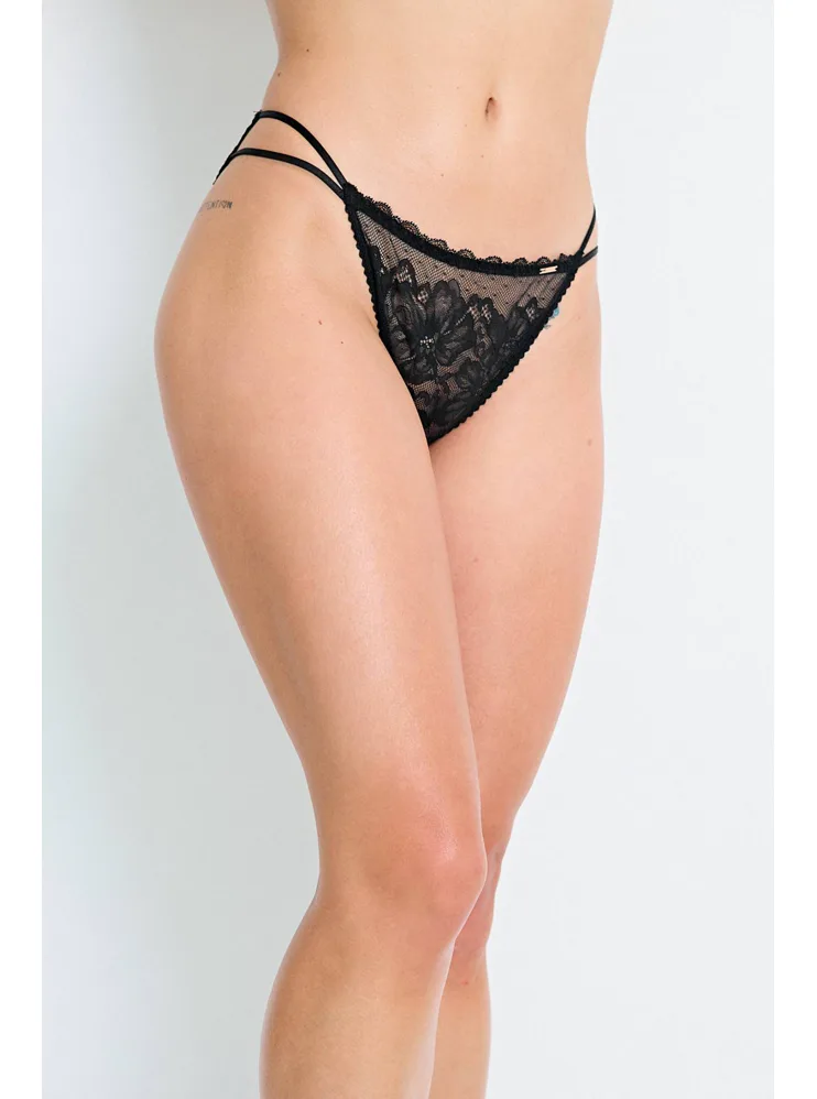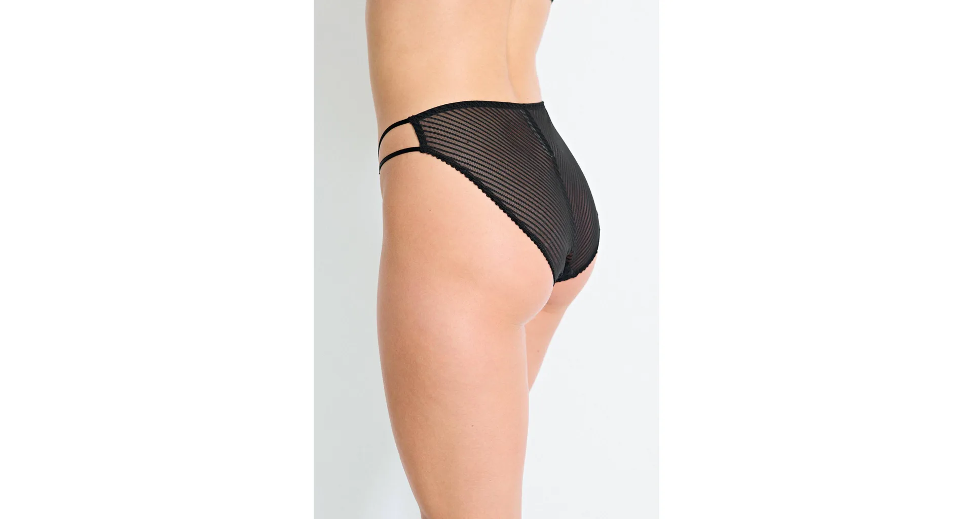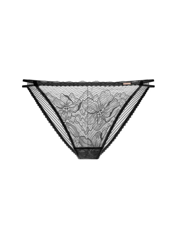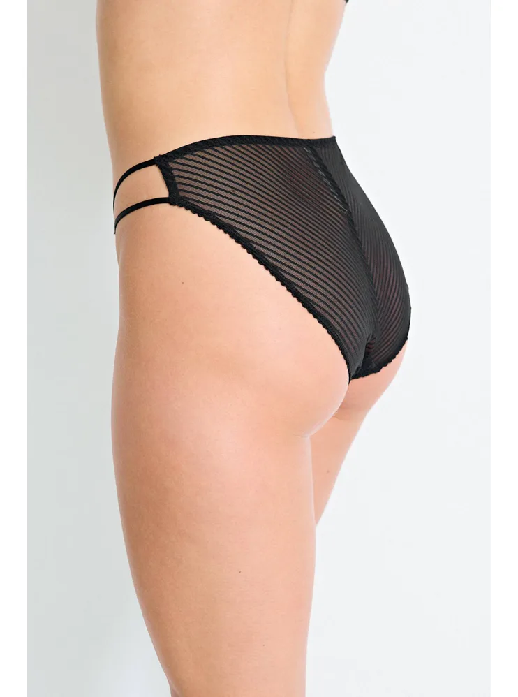 Kalhotky Dorina v klasickém střihu poskytují maximální pohodlí při celodenním nošení, nikde neškrtí a nezařezávají se. Vyrobeny jsou z ekologické krajky a pruhované síťoviny. Černé klasické kalhotky představují pravou volbu pro ženy, které touží po pohodlí, eleganci a udržitelnosti. K těmto kalhotkám si lze pořídit push-up podprsenku ve stejném designu.