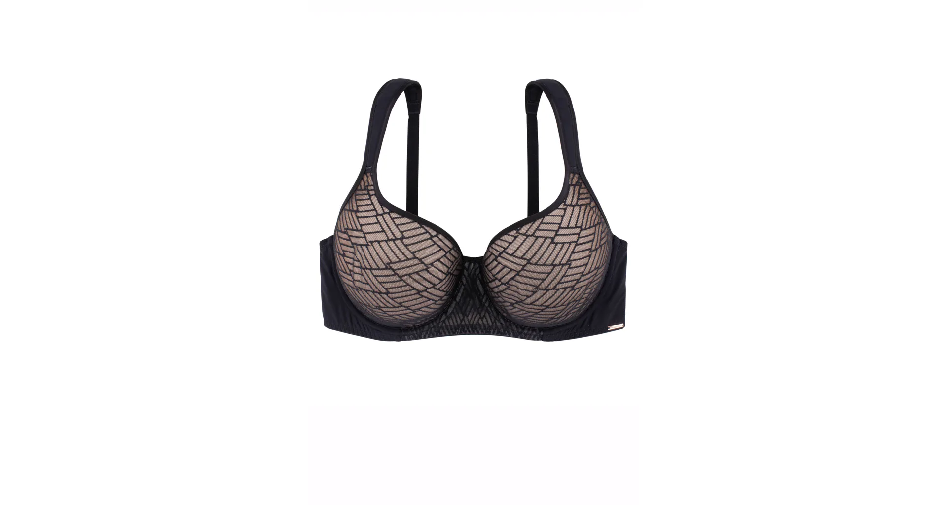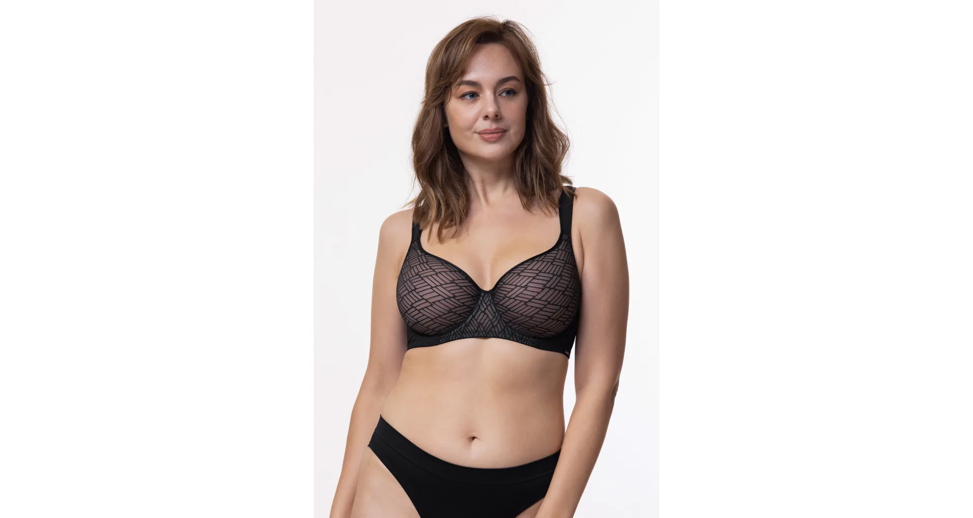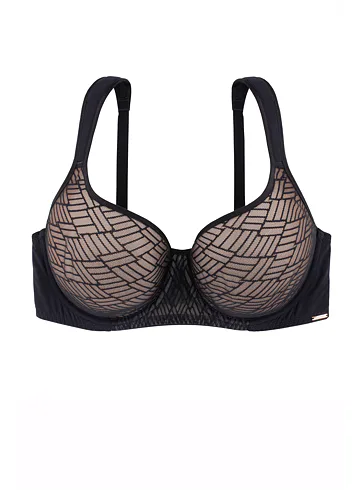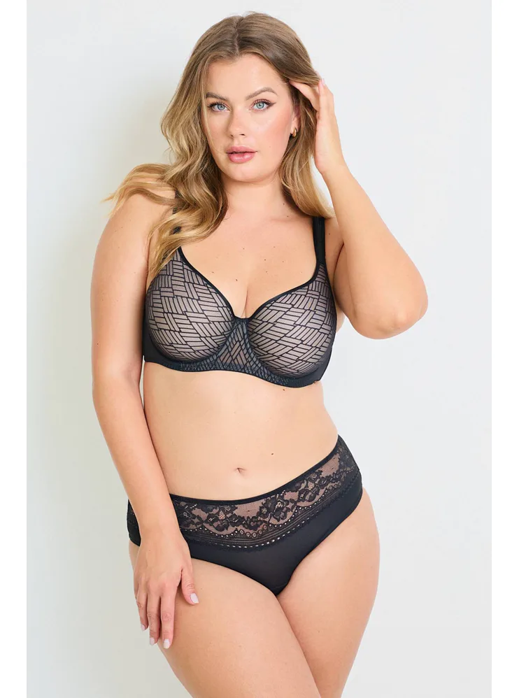 Podprsenka Dorina s vyšším středem udrží poprsí na svém místě, ideální pro větší poprsí. Má měkká podložená ramínka, která pomáhají rovnoměrně rozložit váhou prsou a nikde se nezařezávají. Spacer je speciální druh látky tvořený dvěma vrstvami jemné tkaniny, perfektně přiléhá k pokožce a zajišťuje maximální komfort. Podprsenka v černé barvě zaujme geometrickým vzorem a zapínání má vzadu na tři háčky se třemi polohami stažení. Podprsenku lze pořídit i v krémovém provedení.