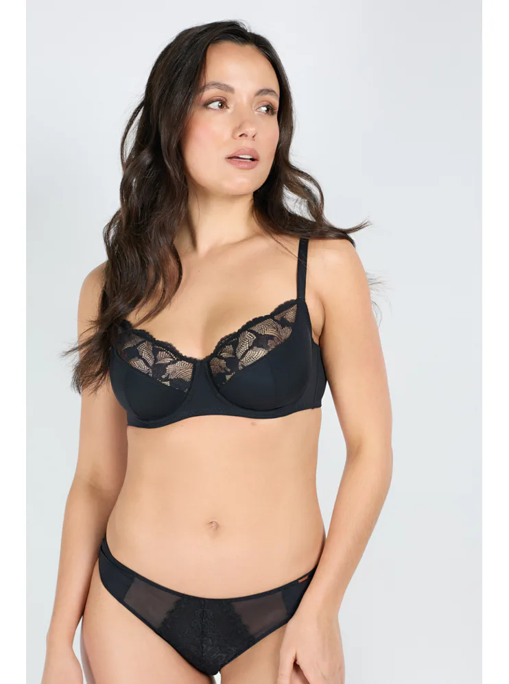 Podprsenka Dorina bez vyztužení s kosticemi vykouzlí krásný výstřih. Černá podprsenka zaujme romantickou krajkou. Udělejte si radost atraktivním spodním prádlem, které vám bude slušet. K této podprsence si lze pořídit kalhotky ve stejném designu.