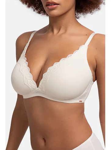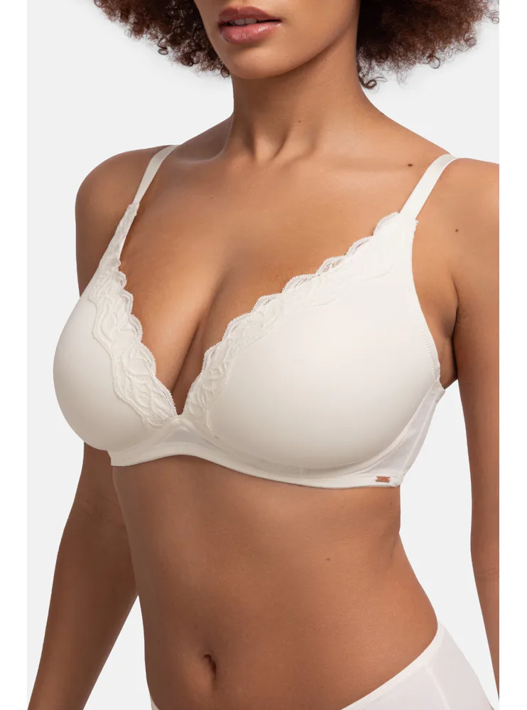 Krémová braletka zajistí přirozený vzhled poprsí a perfektně se přizpůsobí vašim křivkám. Poskytne potřebnou oporu a zároveň vám dopřeje volnost po celý den. Vytvoří krásný dekolt a lze ji pořídit až do velikosti E. Perfektně padne a nikde neškrtí.