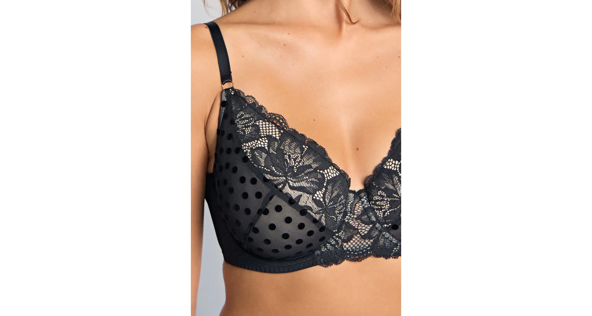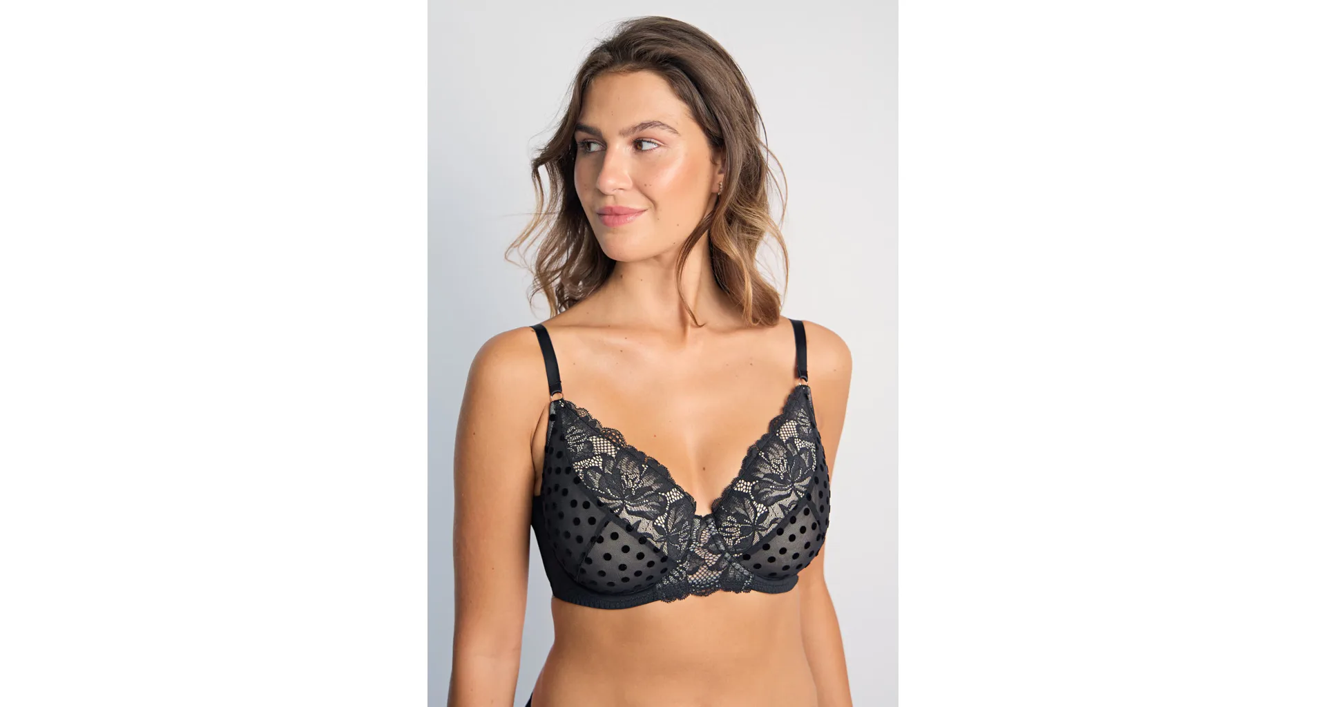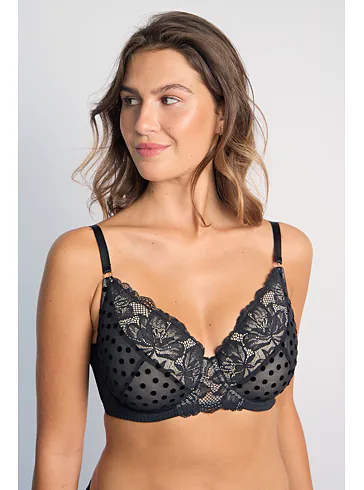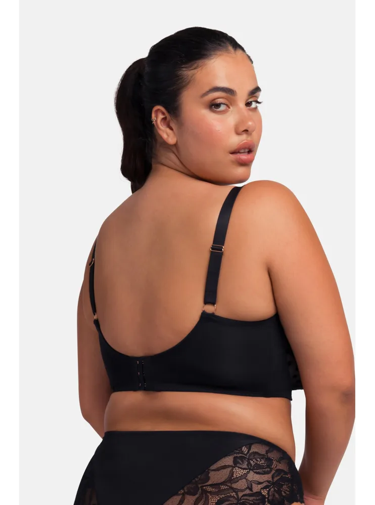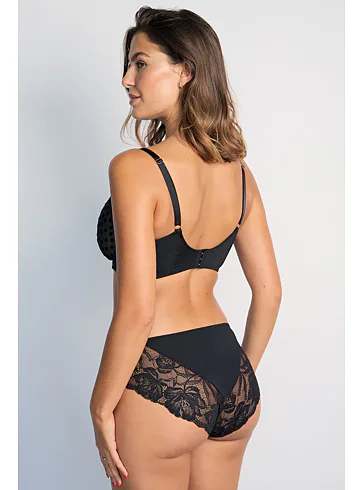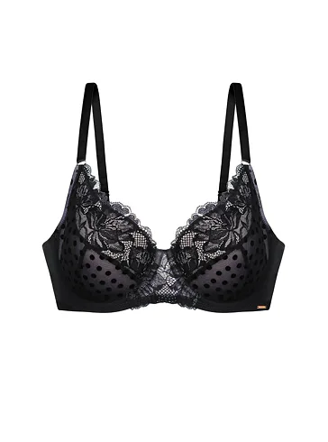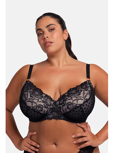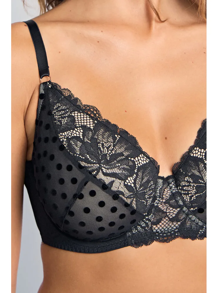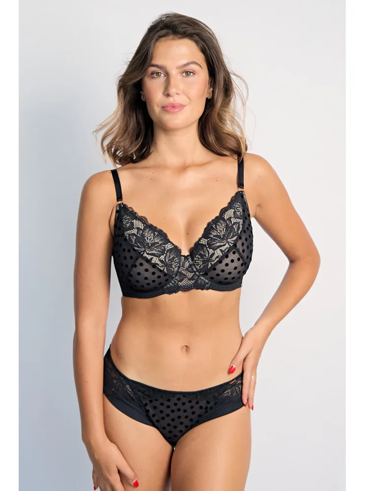 Elegantní podprsenka Dorina v černé barvě zaujme romantickou krajkou. Podprsenka poskytne poprsí potřebnou oporu a vykouzlí krásný dekolt. Vyrobena je z ekologické síťoviny, krajky a mikrovlákna. Dopřejte si kombinaci komfortu a elegance. K této podprsence si lze pořídit kalhotky ve stejném designu.
