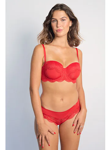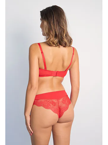 Balkonová podprsenka podtrhne vaši ženskost a zároveň zajistí maximální pohodlí. Červená podprsenka s romantickou krajkou vykouzlí rafinovaný dekolt. Dopřejte si luxusní pohodlí a podtrhněte svou krásu s podprsenkou Dorina. K této podprsence si lze pořídit kalhotky ve stejném designu nebo saténový župan ve stejném stylu.