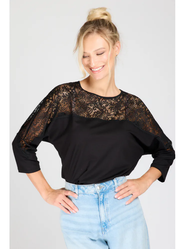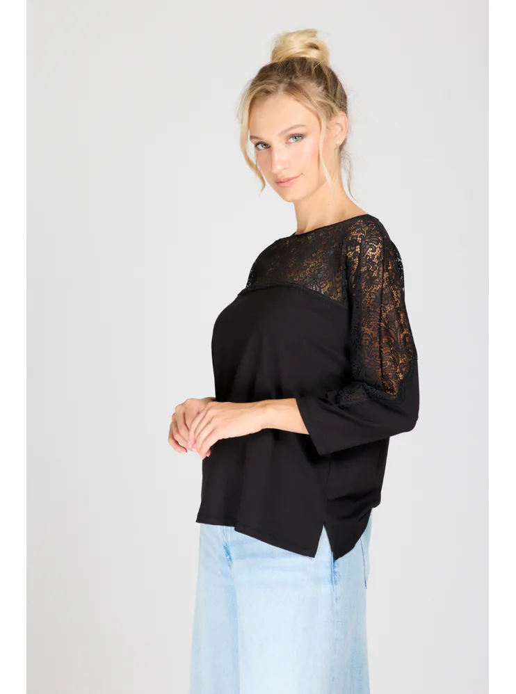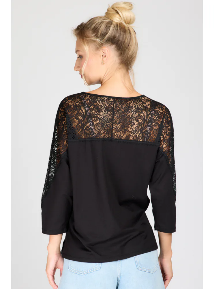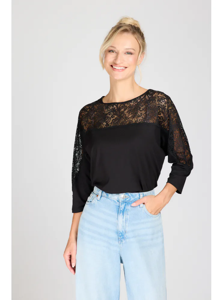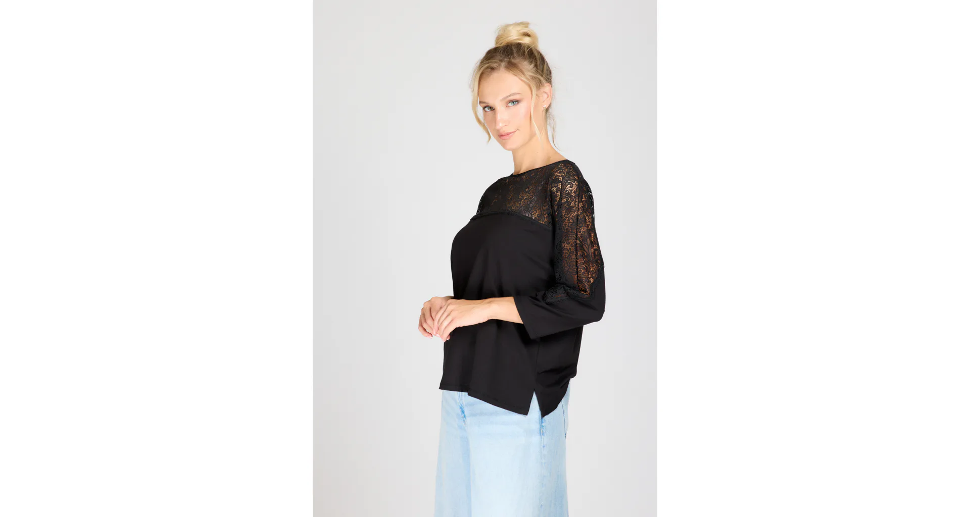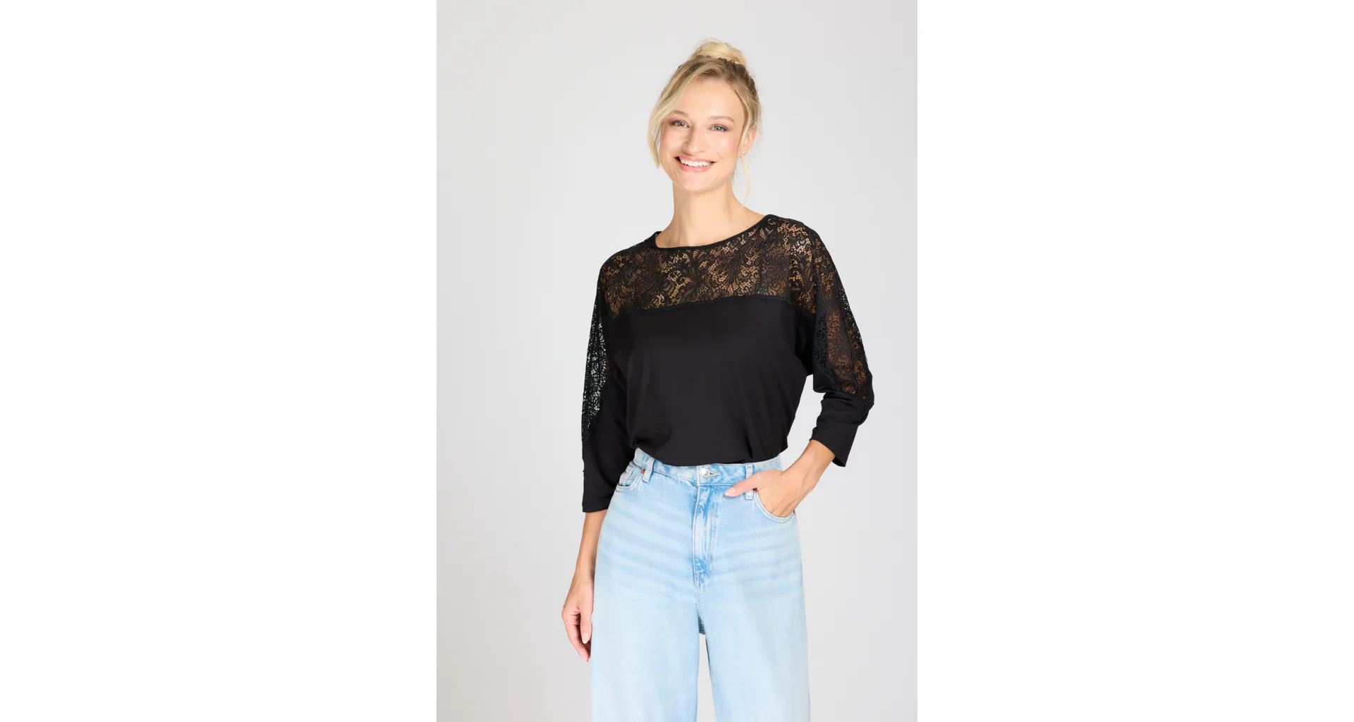 Halenka s tříčtvrtečními rukávy spojuje nadčasovou eleganci, jemné detaily a maximální pohodlí. Kombinace krajky s klasickou látkou dodává modelu smyslnost a rafinovanost. Halenku snadno sladíte s kalhotami, džíny nebo sukní.