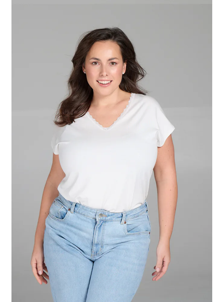 Dámské bílé tričko Miriam zaujme krajkovým detailem na zádech. Tričko má výstřih do písmene V a je vyrobeno z viskózy, která vyniká lehkostí, jemností a prodyšností, má hypoalergenní vlastnosti a snadno se udržuje. Dámské tričko unosíte do práce, na rande, do školy či při setkání s přáteli. Doplňte váš šatník o jedinečný kousek oblečení, ve kterém se budete cítit pohodlně a atraktivně. Tričko s krátkým rukávem lze pořídit i v červené barvě.