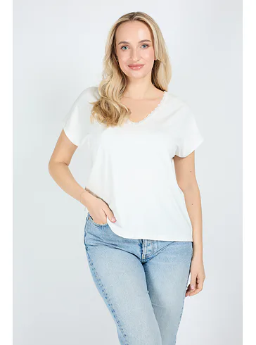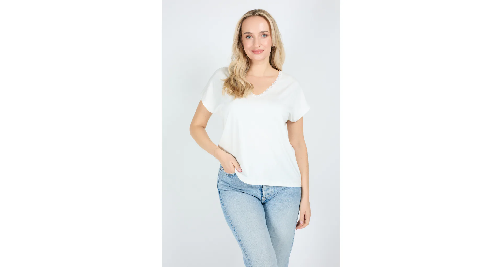 Elegantní bílé tričko s krátkým rukávem je příjemné na celodenní nošení. Má volný střih, který lichotí každé postavě a umožňuje volnost pohybu. Vhodné pro běžné nošení i výjimečné příležitosti.