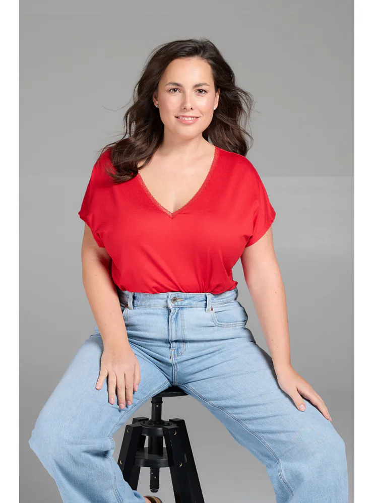 Dámské červené tričko Miriam zaujme krajkovým detailem na zádech. Tričko má výstřih do písmene V a je vyrobeno z viskózy, která vyniká lehkostí, jemností a prodyšností, má hypoalergenní vlastnosti a snadno se udržuje. Dámské tričko unosíte do práce, na rande, do školy či při setkání s přáteli. Doplňte váš šatník o jedinečný kousek oblečení, ve kterém se budete cítit pohodlně a atraktivně. Tričko s krátkým rukávem lze pořídit i v bílé barvě.