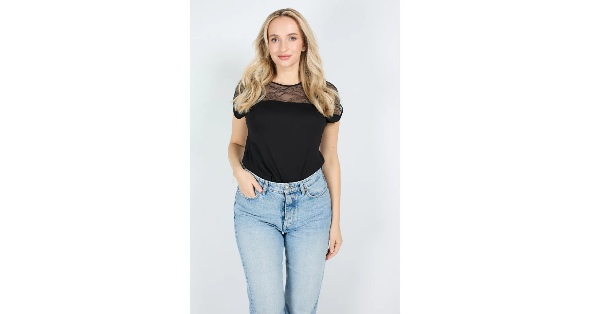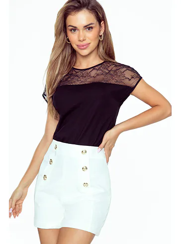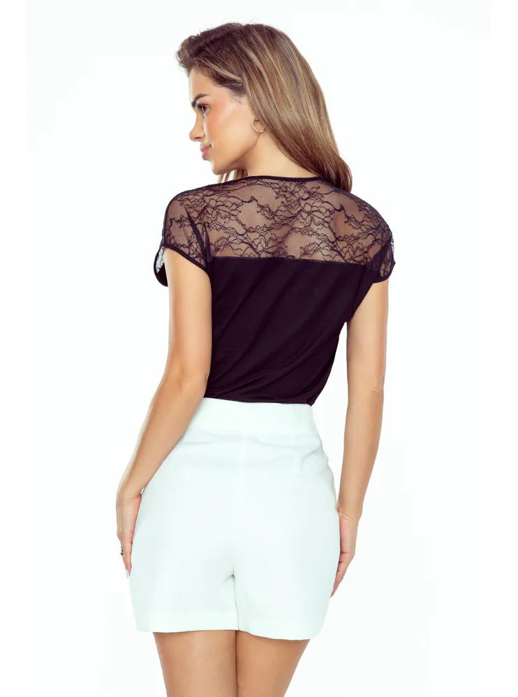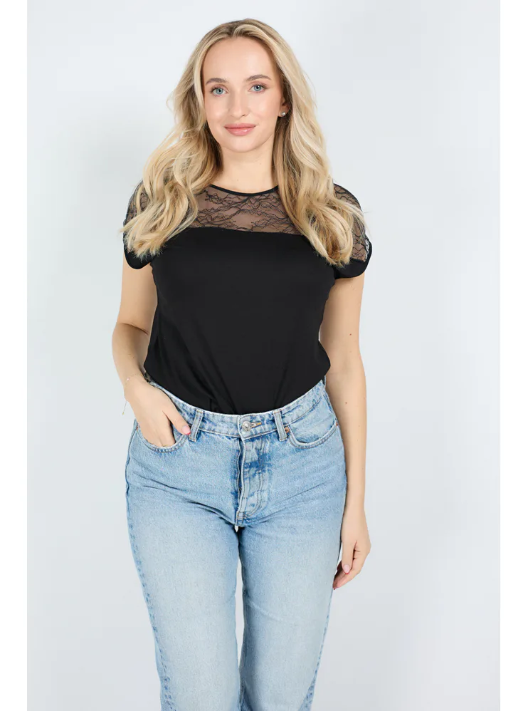Černé tričko Mitzi vás uchvátí průsvitnou krajkou přes ramena. Díky rovnému střihu krásně sedí na postavě a poskytuje pohodlí. Oživte váš šatník nadčasovým kouskem.